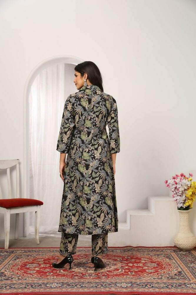 Jyoti Fashion Women's Black Chanderi Silk Floral Print with Side Pocket Kurtis & Sets - S