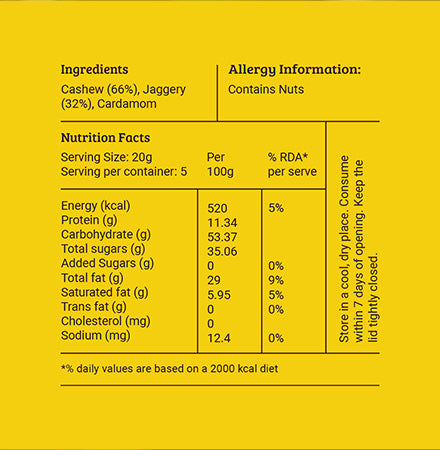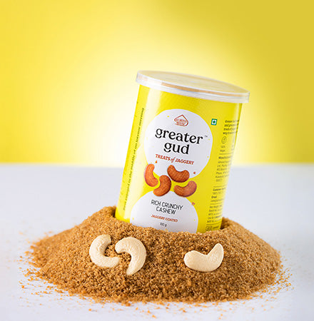Handpicked Cashew Nuts oven-roasted and coated with loads of Jaggery to create a crunchy and delightful treat.