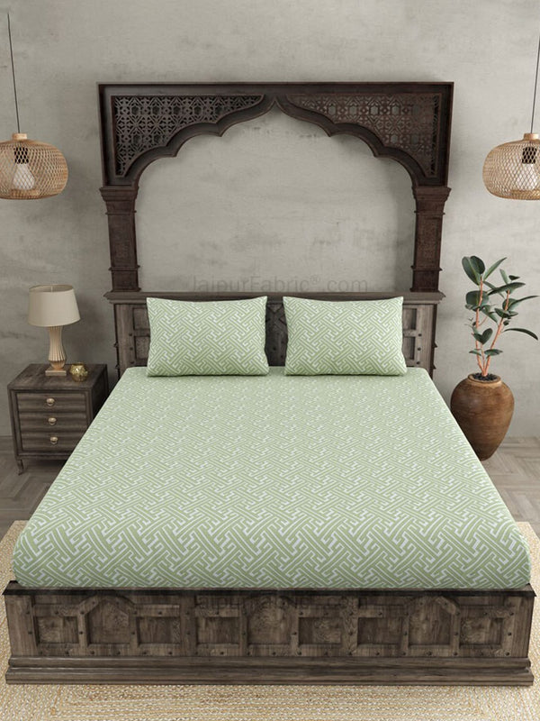JAIPUR FABRIC Green & White Ethnic Motifs 250 TC Cotton King Bedsheet with 2 Pillow Covers - Double King
