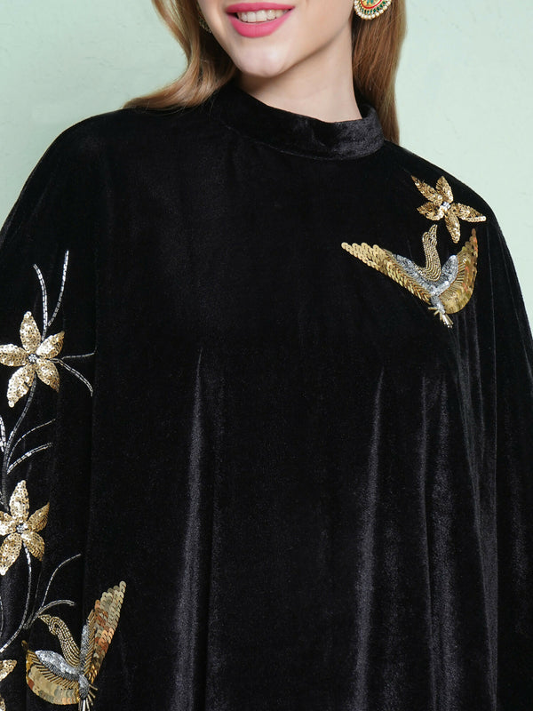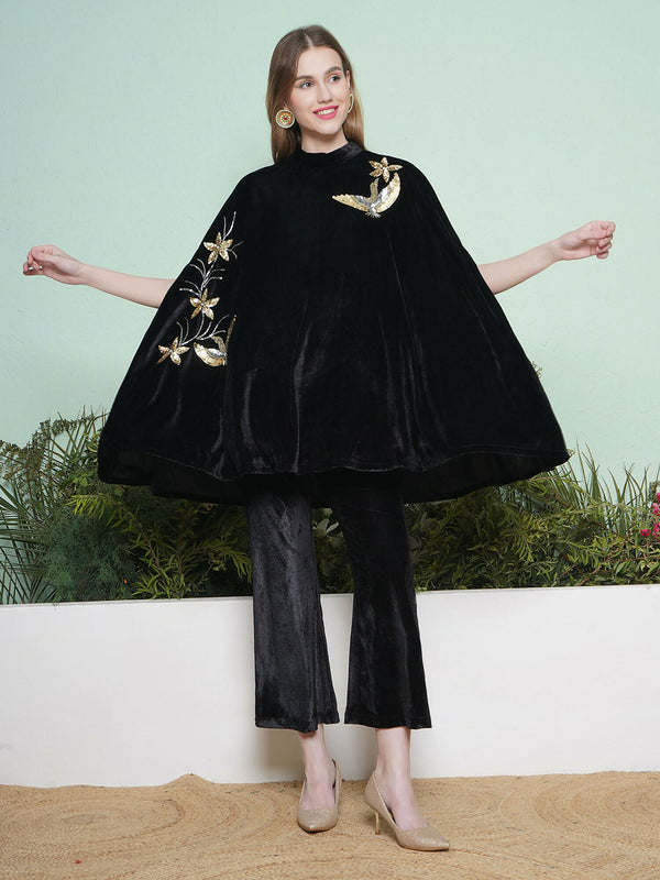 Joban Fashion Black Hand Embellished Cape Style Kurta with Bellbottom PantsAbout the Product: No. of Components: 2 Top Fabric: Velvet Bottom Fab...