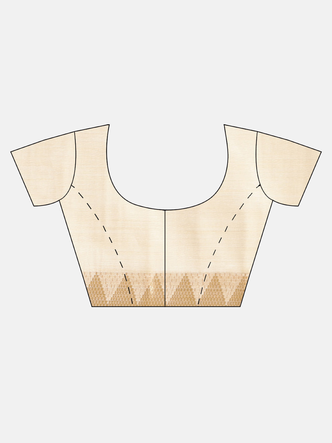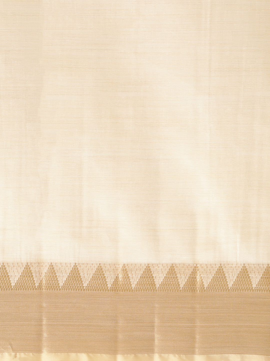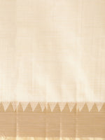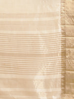 Kalini Cream-Coloured & Golden Striped Zari Silk Cotton Solid Saree - Distacart