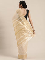 Kalini Cream-Coloured & Golden Striped Zari Silk Cotton Solid Saree