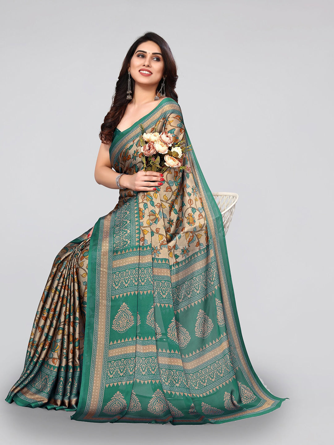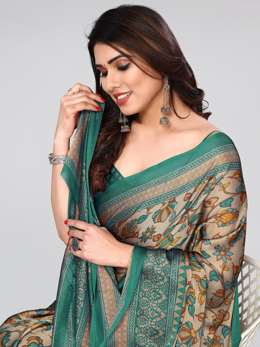 Kalini Floral Poly Chiffon Saree With Blouse Piece Product Details Design Details Teal and beige saree Floral printed saree with solid border ...