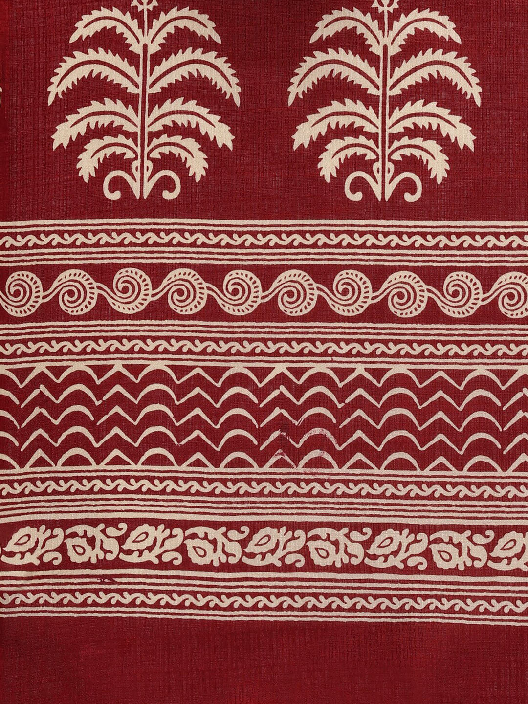Kalini Maroon & Cream-Coloured Khadi Silk Kalamkari Saree - Distacart
