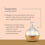 • Keya Seth Aromatherapy, Stopage V - The Age Reversal Complex is an Aromatherapy based, pure essential oil enriched innovative natural formula that helps to keep your skin youthful. This hypoallergenic cream repairs fine lines and wrinkles, erases age spots, rejuvenates skin tone and gives a natural, healthy glow making the skin visibly softer, smoother, brighter and more resilient. Along with the essential oils of Lavender, Clary sage and Frankincense STOPAGE V also contains a potent dose of Vitamin C, Vitamin E, Vitamin B2, B3 (Niacinamide) and B5. Essential peptides, Hyaluronic acid and Aloesin are the other distinct ingredients infused in the formula.