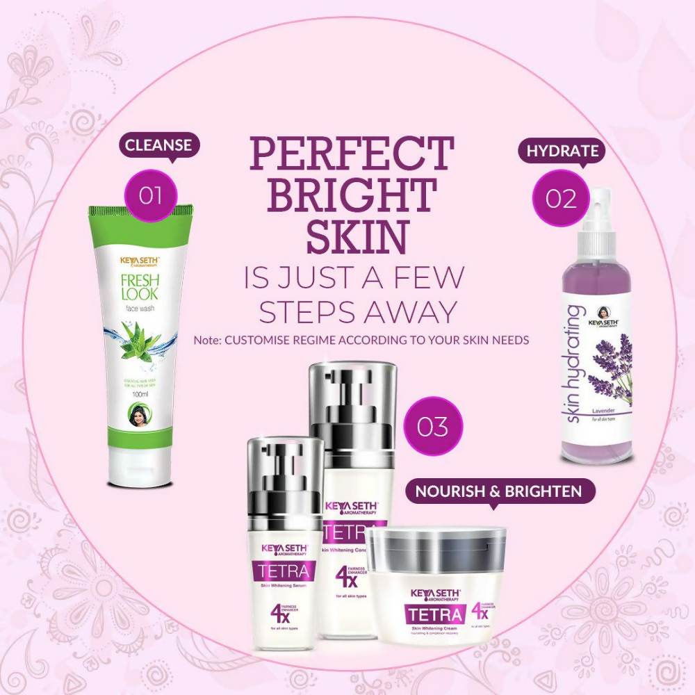 • Keya Seth Aromatherapy, Tetra Skin Brightening Serum is a concentrated, quick-absorbing, lightweight serum enriched with pure essential oils and active extracts of plant-based ingredients with 4x more power of brightening skin tone, without harmful side effects.
