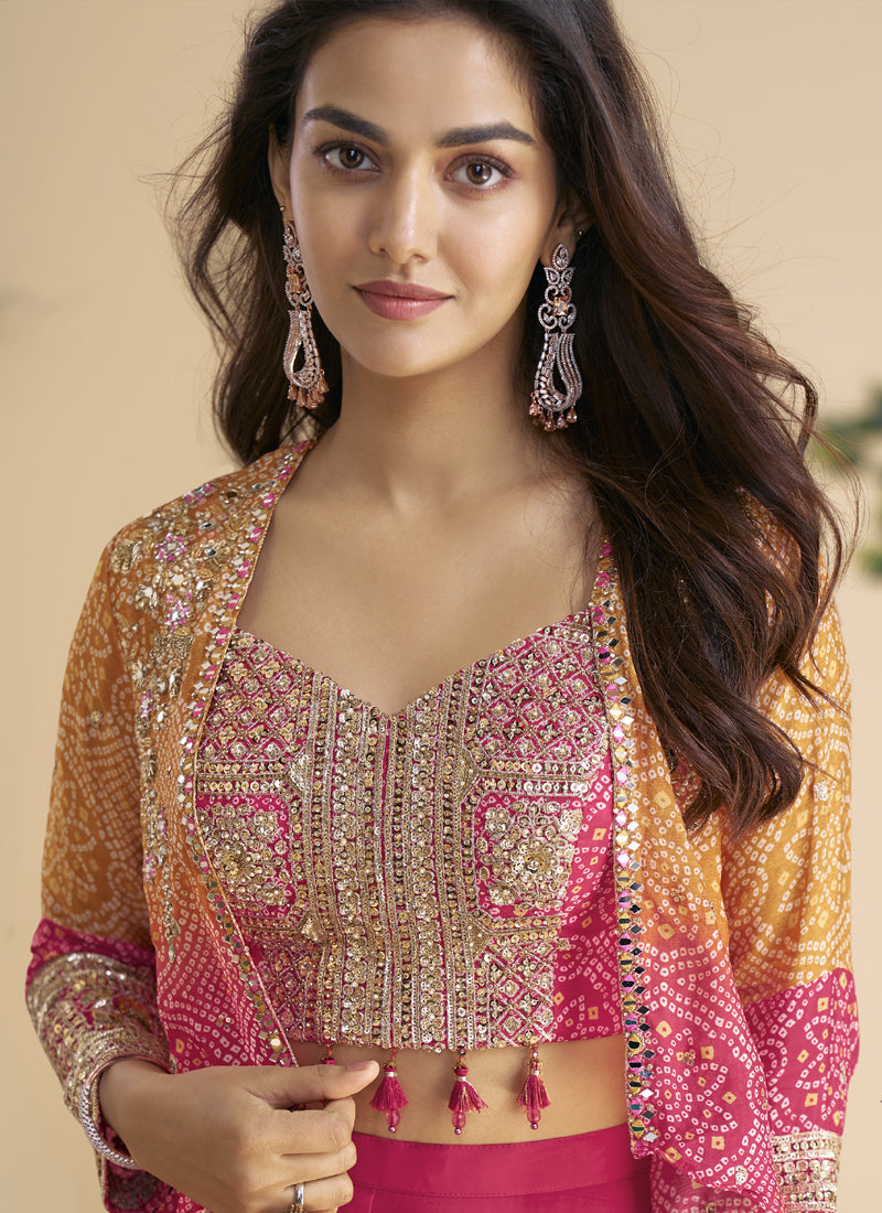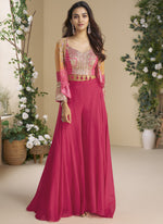 Vegaa Fashion Pink Chinon Silk Embroidered Western Palazzo Suit