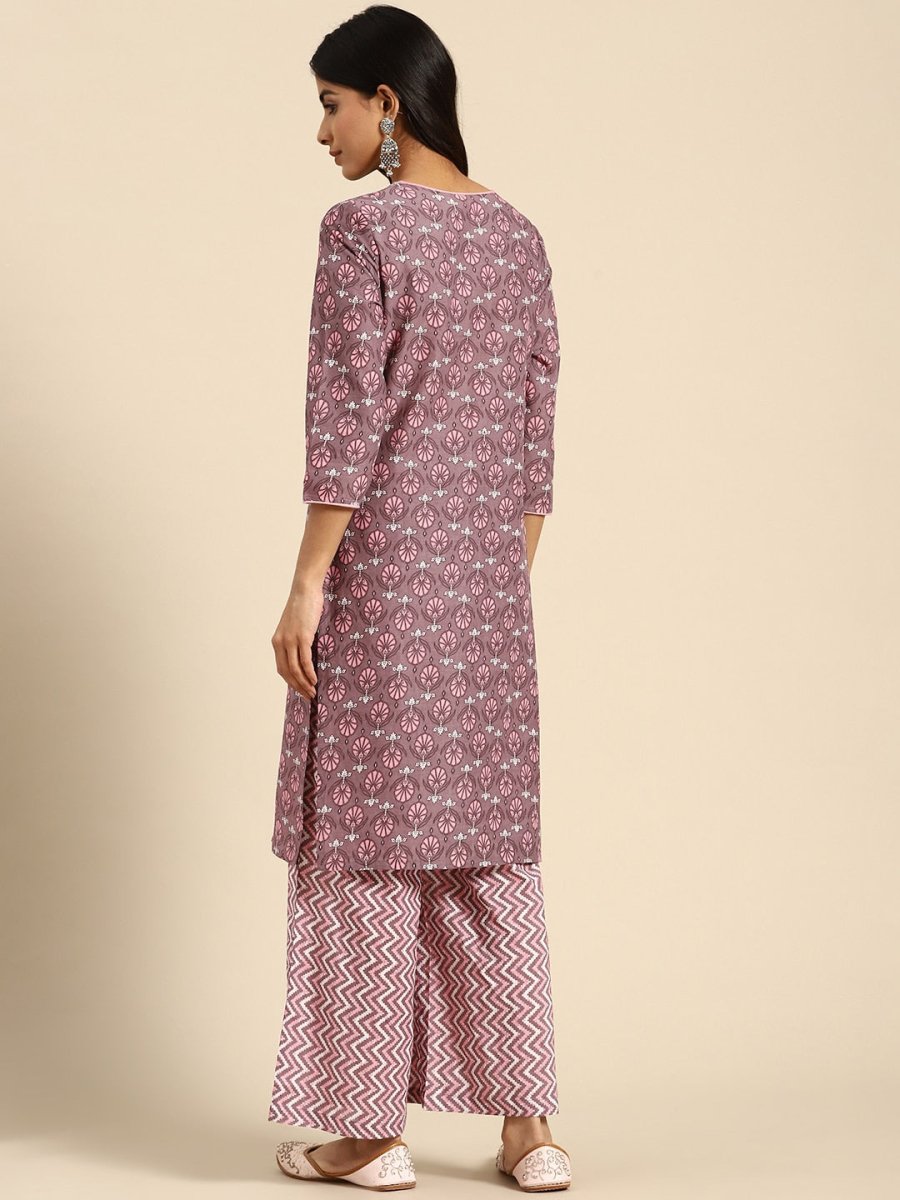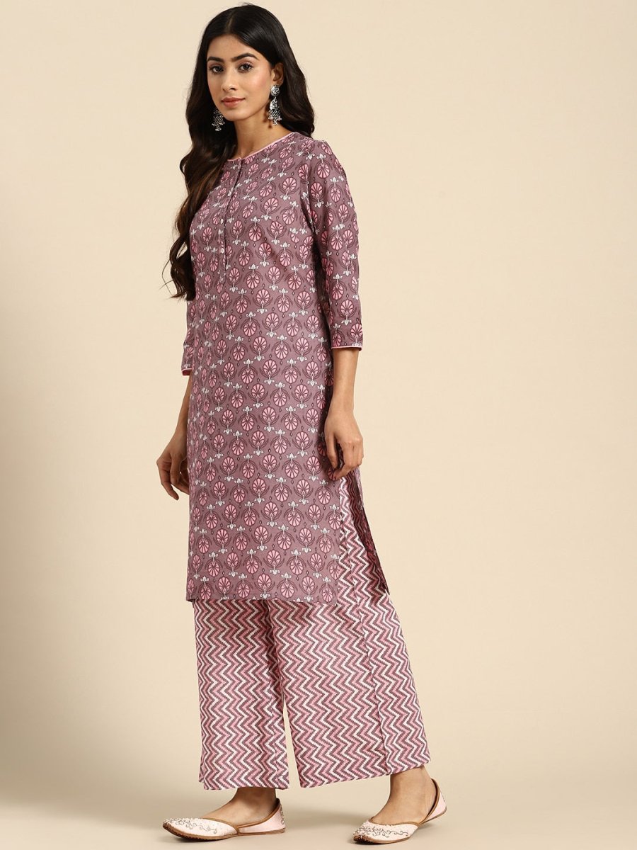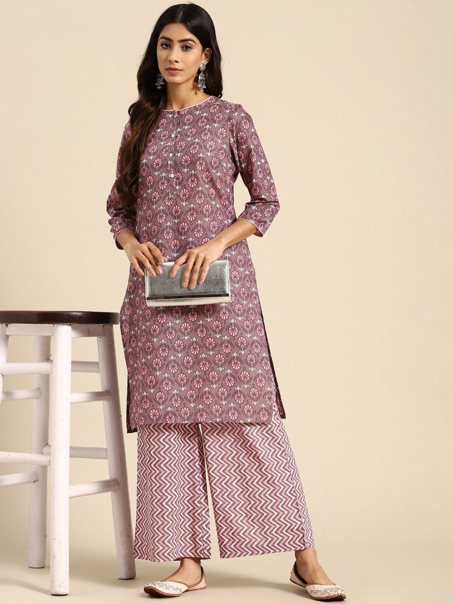 All About You Ethnic Motifs Printed Kurta with Palazzos Product Details Mauve printed Kurta with Palazzos Kurta design: Ethnic motifs print...