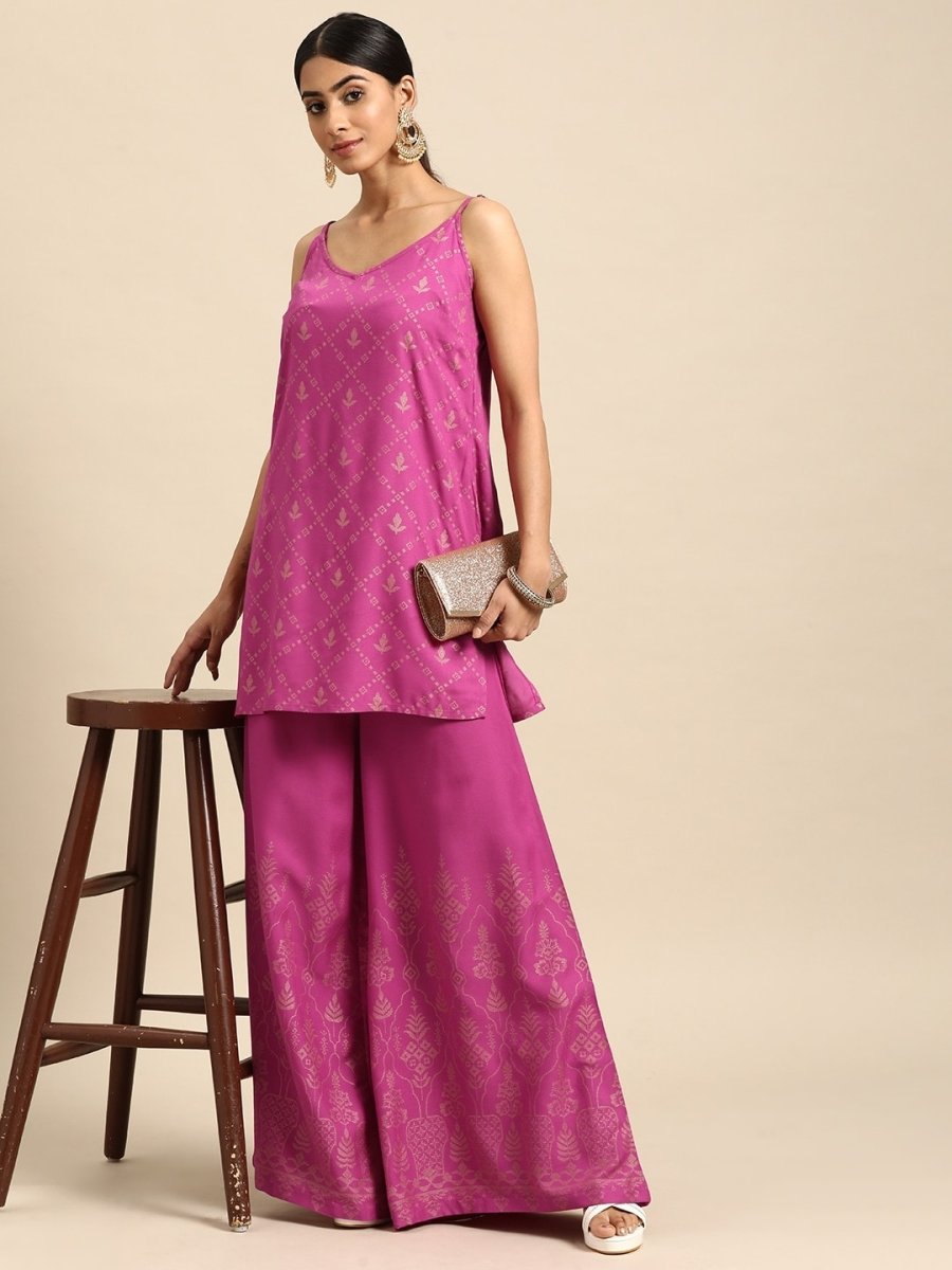 Pink printed Kurta with Palazzos