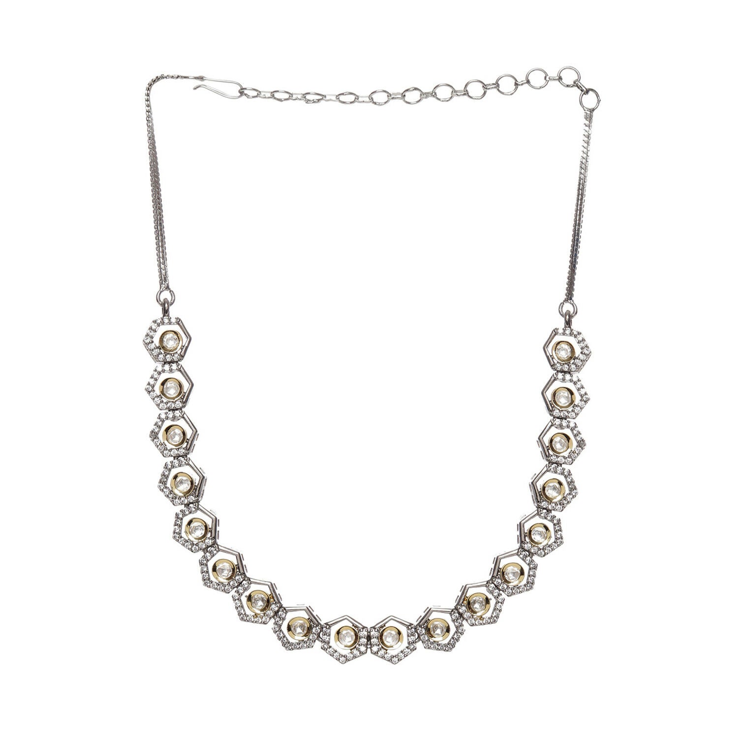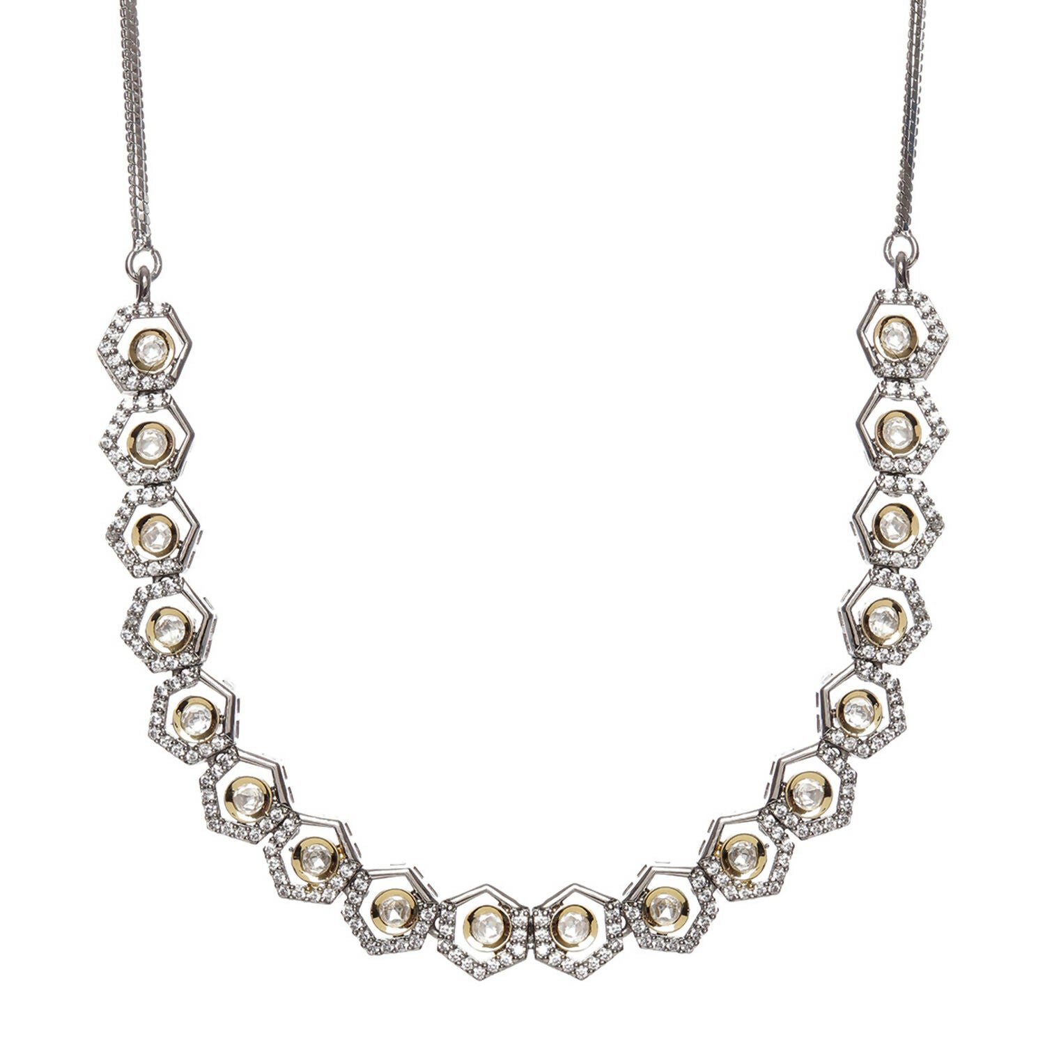 Dual Tone Gold and Silver Choker with American Diamonds and Kundan (Silver) - Ruby Raang - Distacart