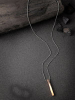 • Style Note: Copper tone bar charm pendant, comes with a chain, secured with a lobster closure.Pair it with your favourite t shirt or shirt and flaunt it across the town.