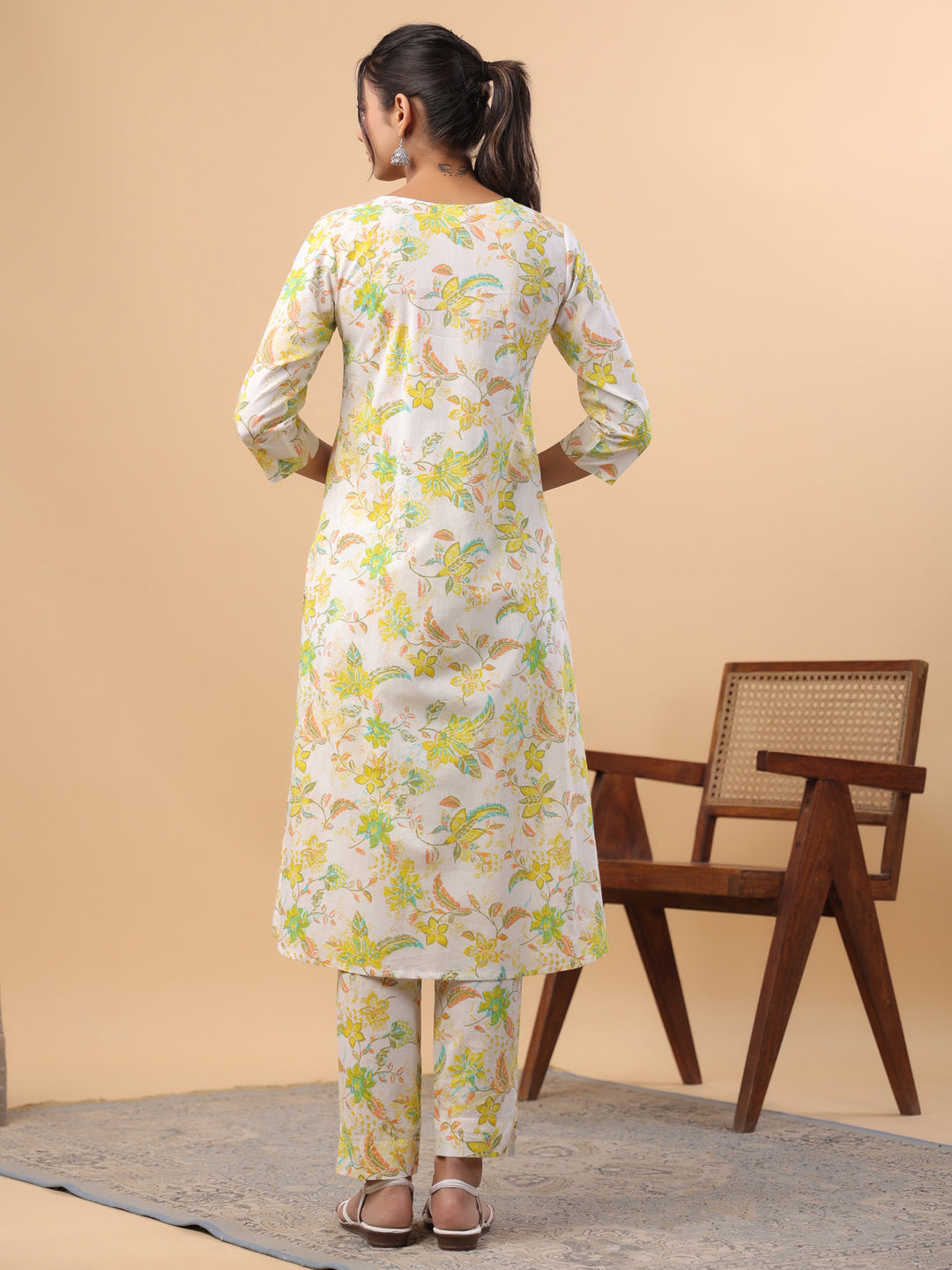 Janasya A-Line Cambric White Floral V-Neck Set - Distacart