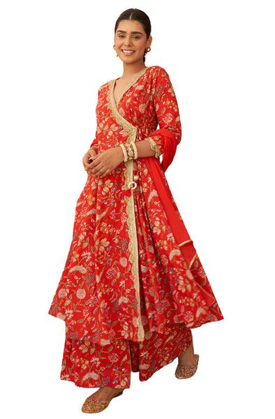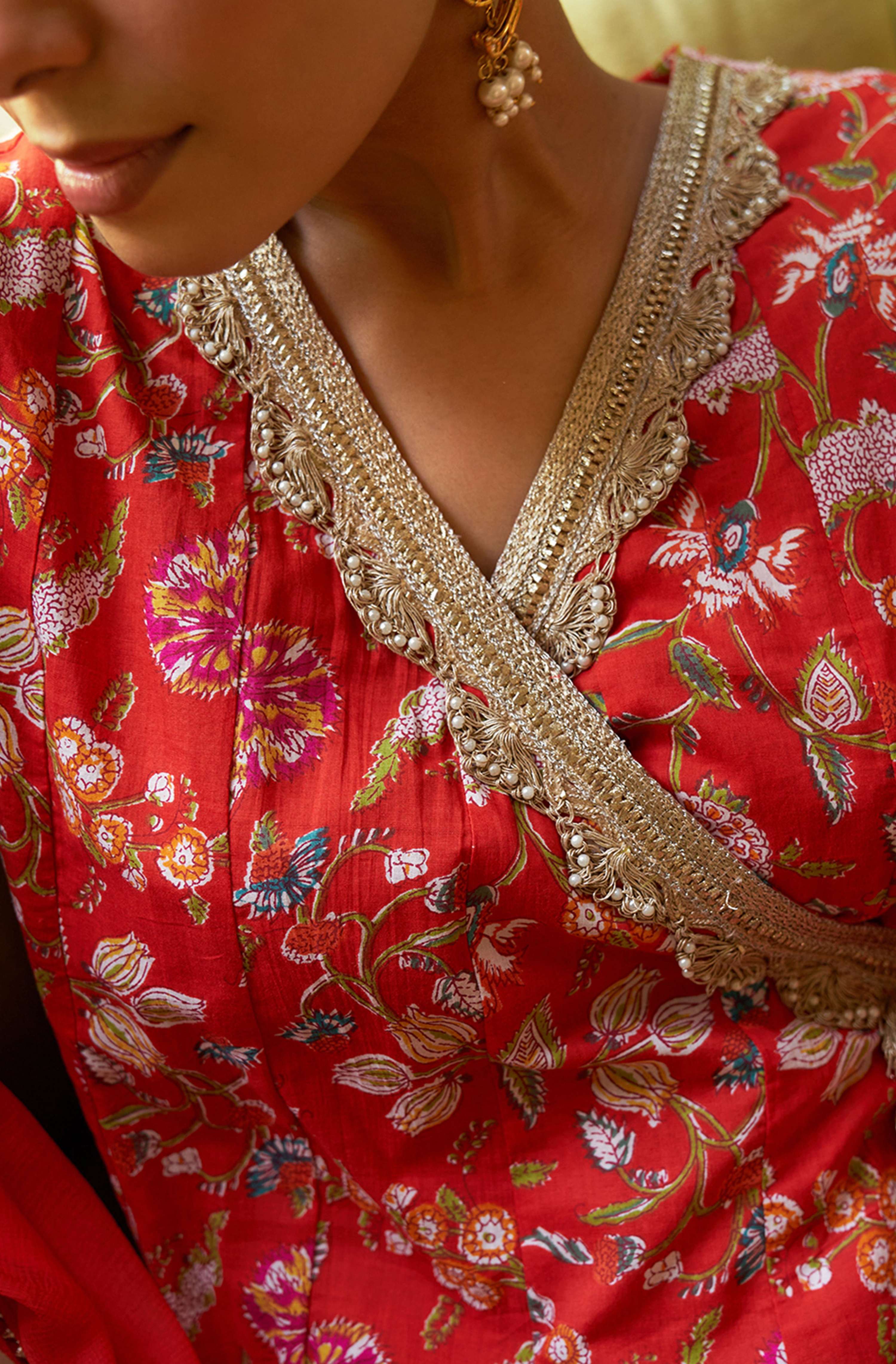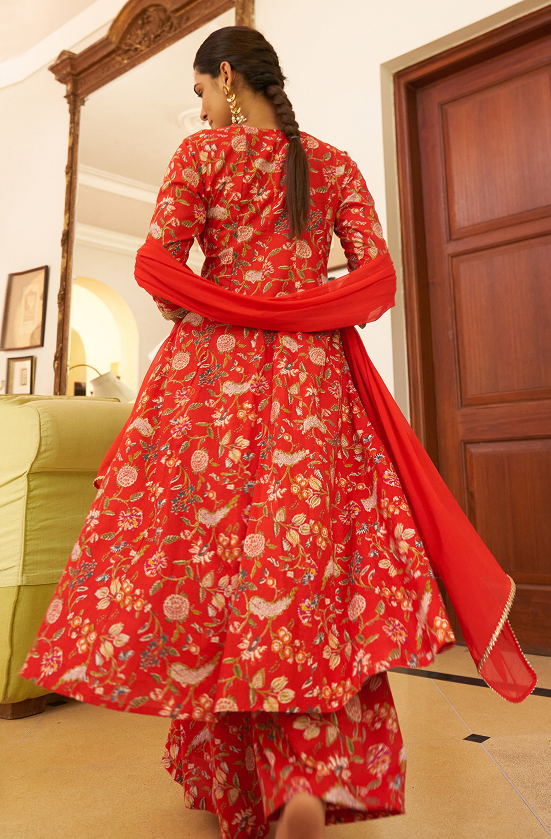 Janasya Red Cotton Floral Printed SetAbout the Product: Color: Red Fabric: Cotton Pattern: Floral Printed Occasion: Festive Top Type: Kurta T...