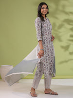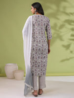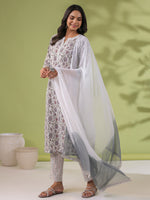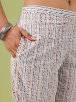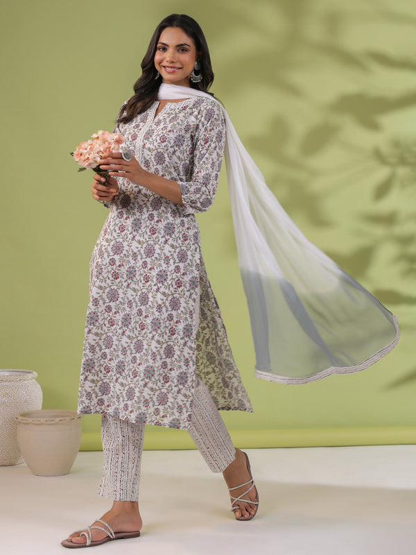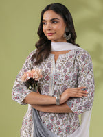 Janasya Regular Cambric White Floral Notch Neck Set