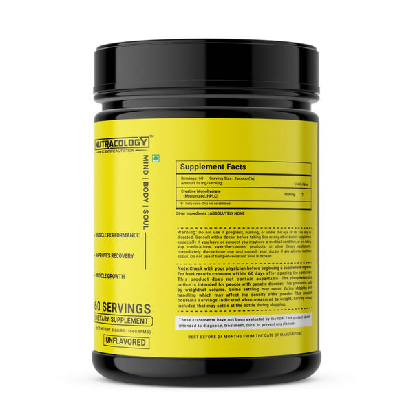 Nutracology Crea X 3.0 Micronized Creatine Powder Supports Athletic Performance & Power - 300 gm - Unflavoured