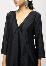 trueBrowns Blue Foil High Slit- Foil PantDescription Silk blend high slit foil kurta with foil border silk blend pants. The pant has lining through...