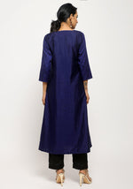 trueBrowns Blue Silver Laced Kurta- Ruffled Pant-Dupatta