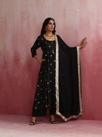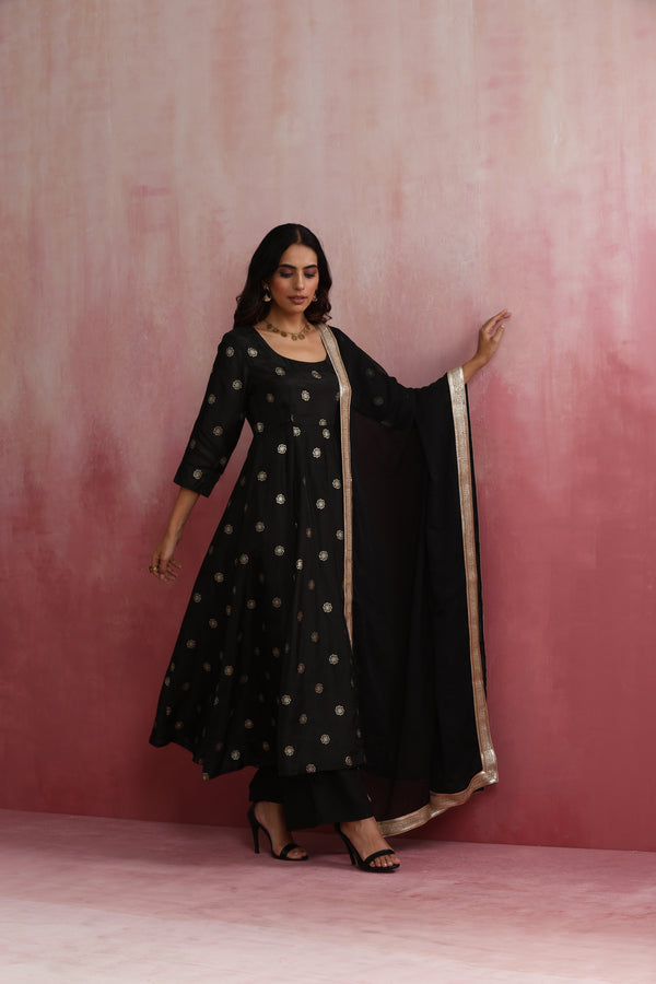 trueBrowns Black Viscose Silk Kurta Set