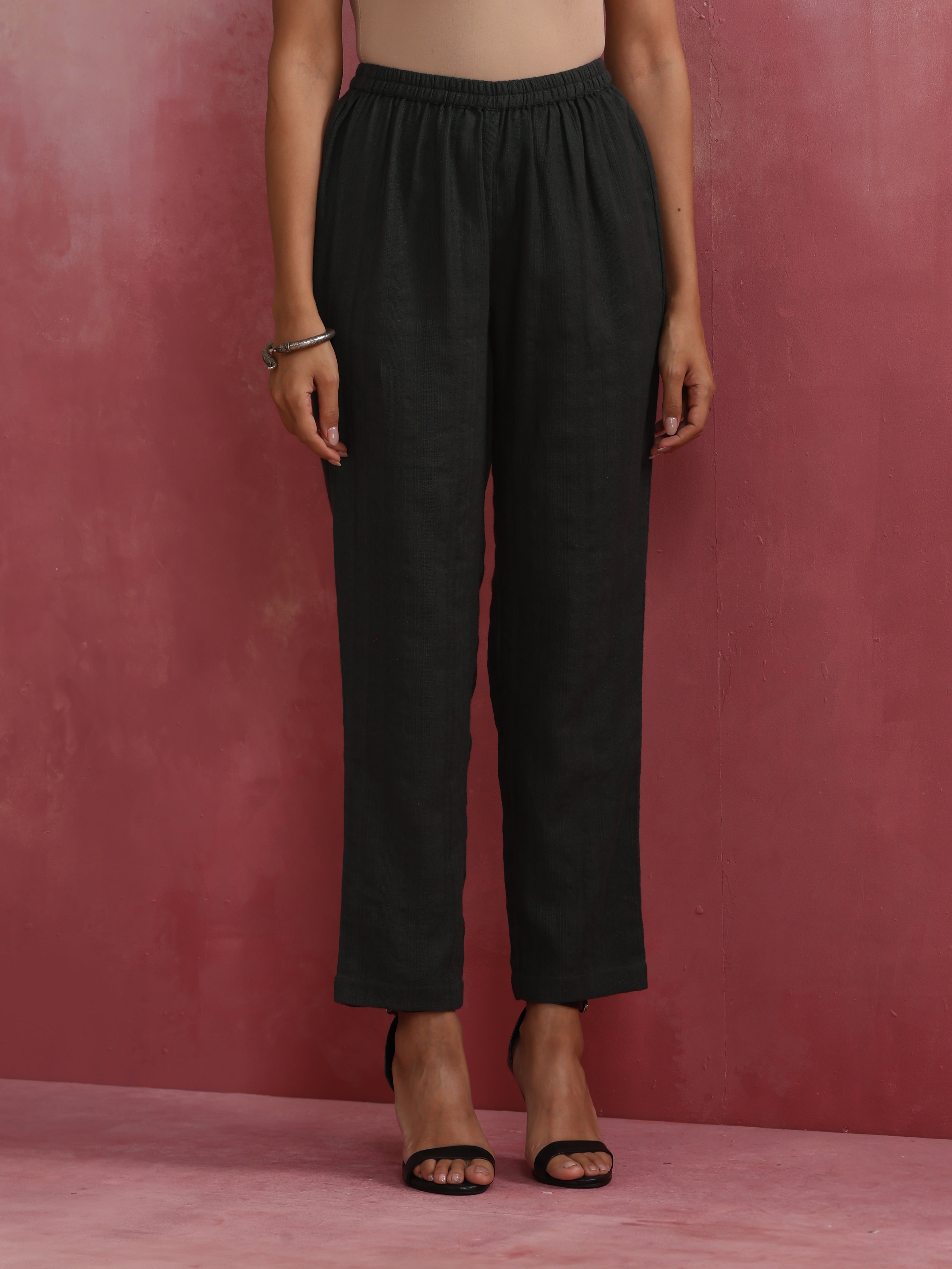 trueBrowns Dark Olive Green Cotton Dobby Kurta SetDescription Elevate your style with this dark olive green cotton dobby high low kurta with 3/4th ...