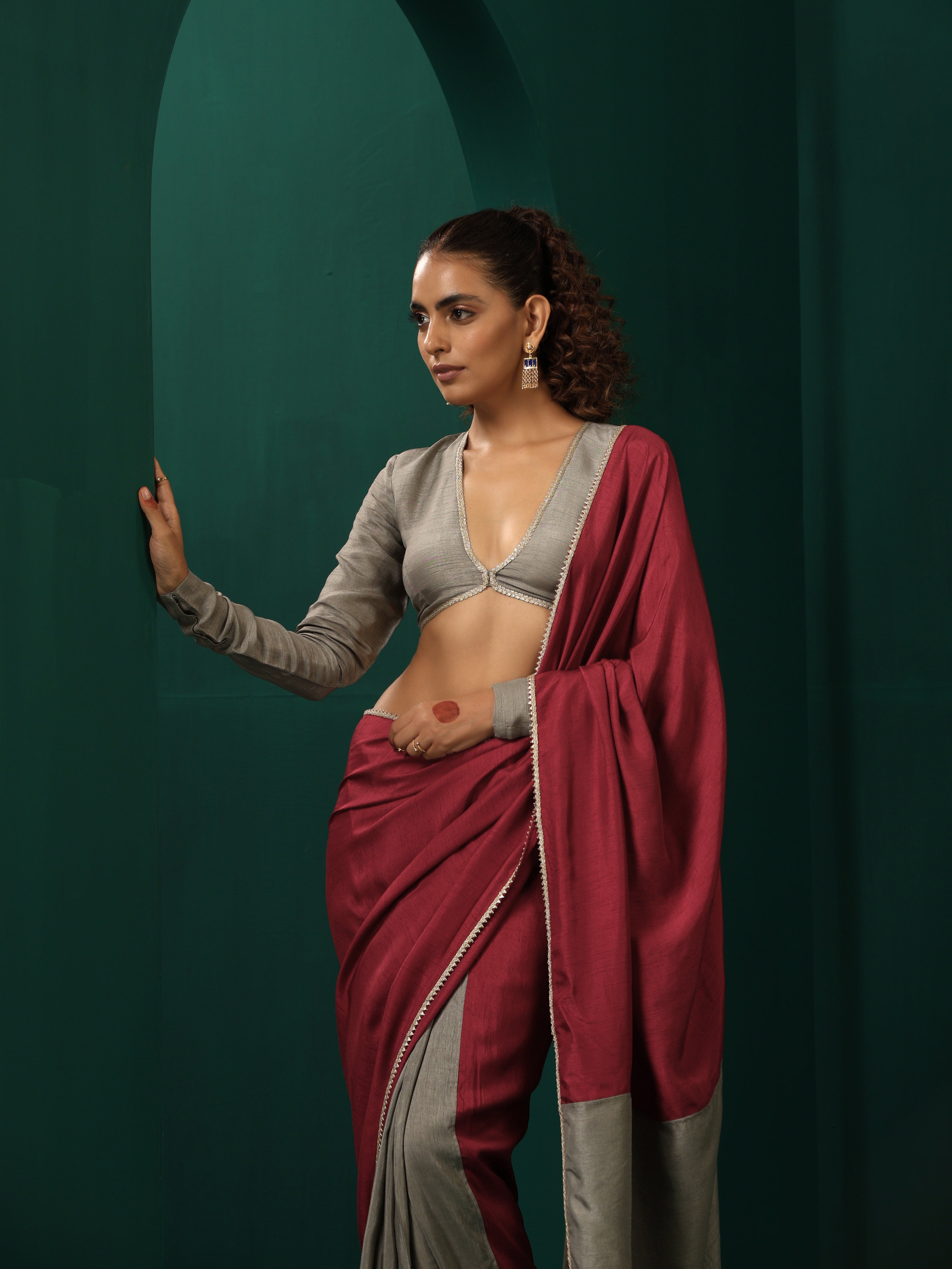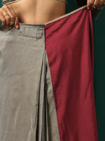 trueBrowns Grey Maroon Silk Ready to Wear Saree