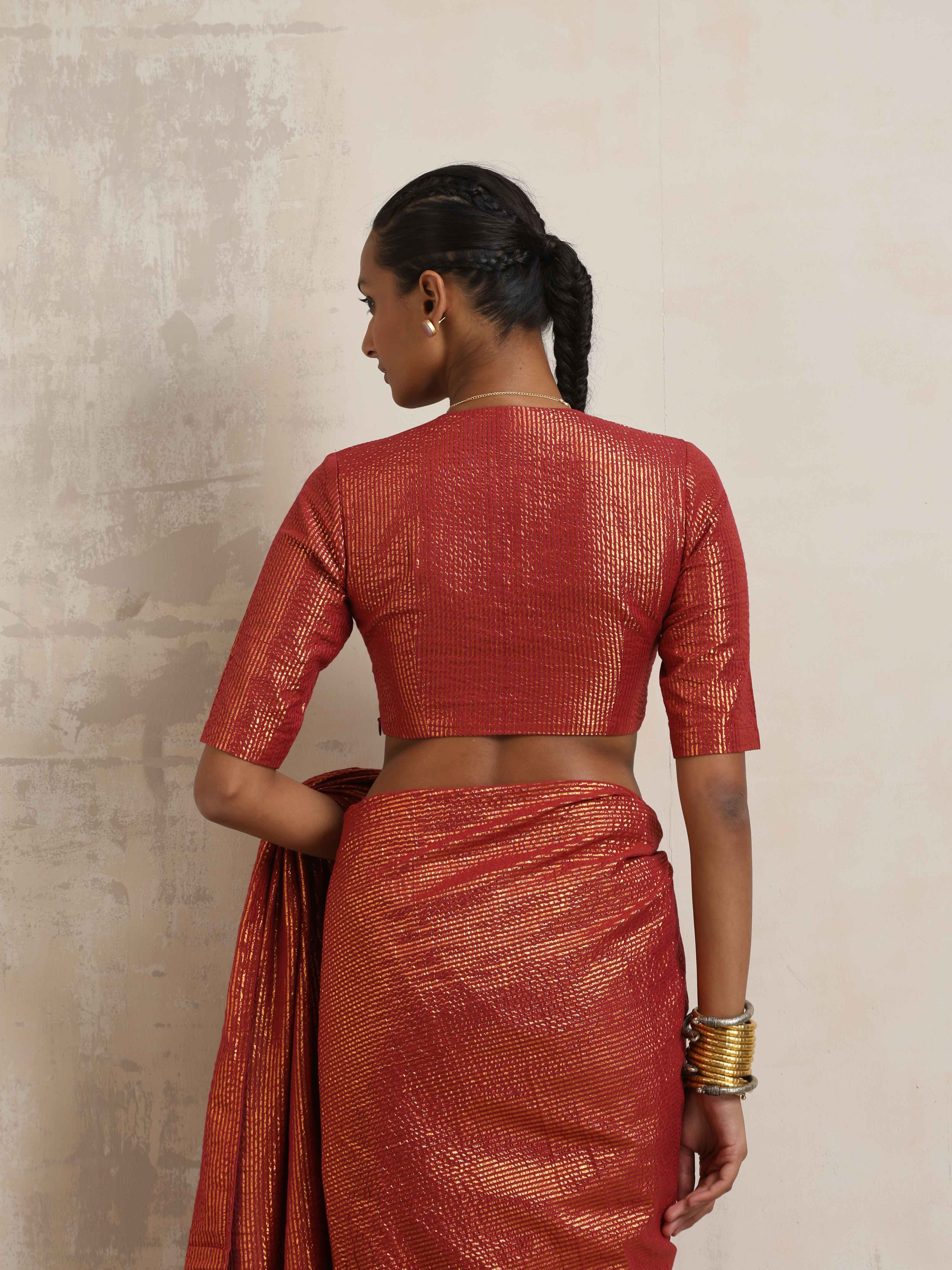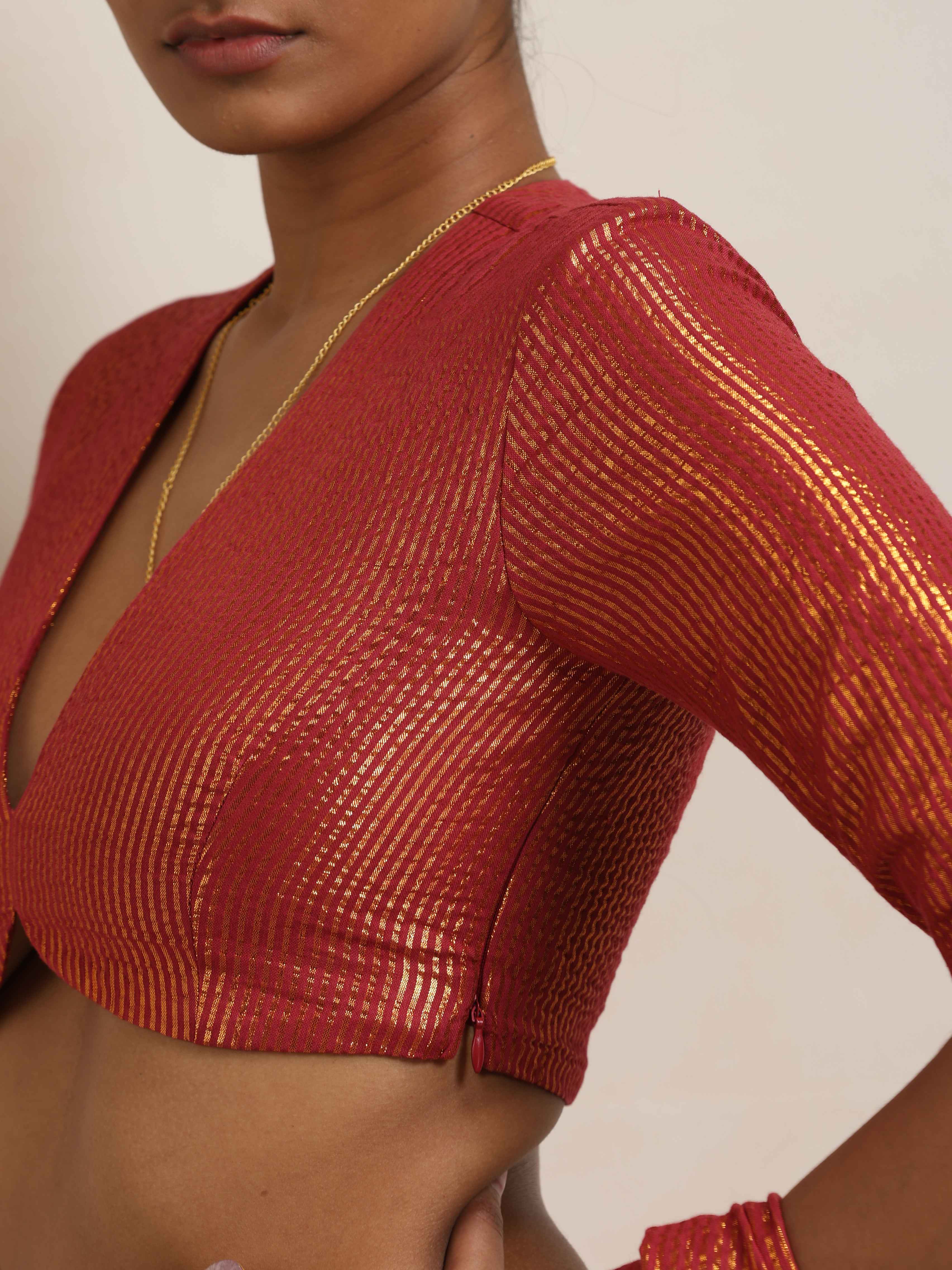 • Elevate your style with this maroon cotton gold lurex blouse