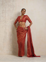 trueBrowns Maroon Gold Metallic BlouseDescription Elevate your style with this maroon cotton gold lurex blouse It's an ideal blend of elegance and...
