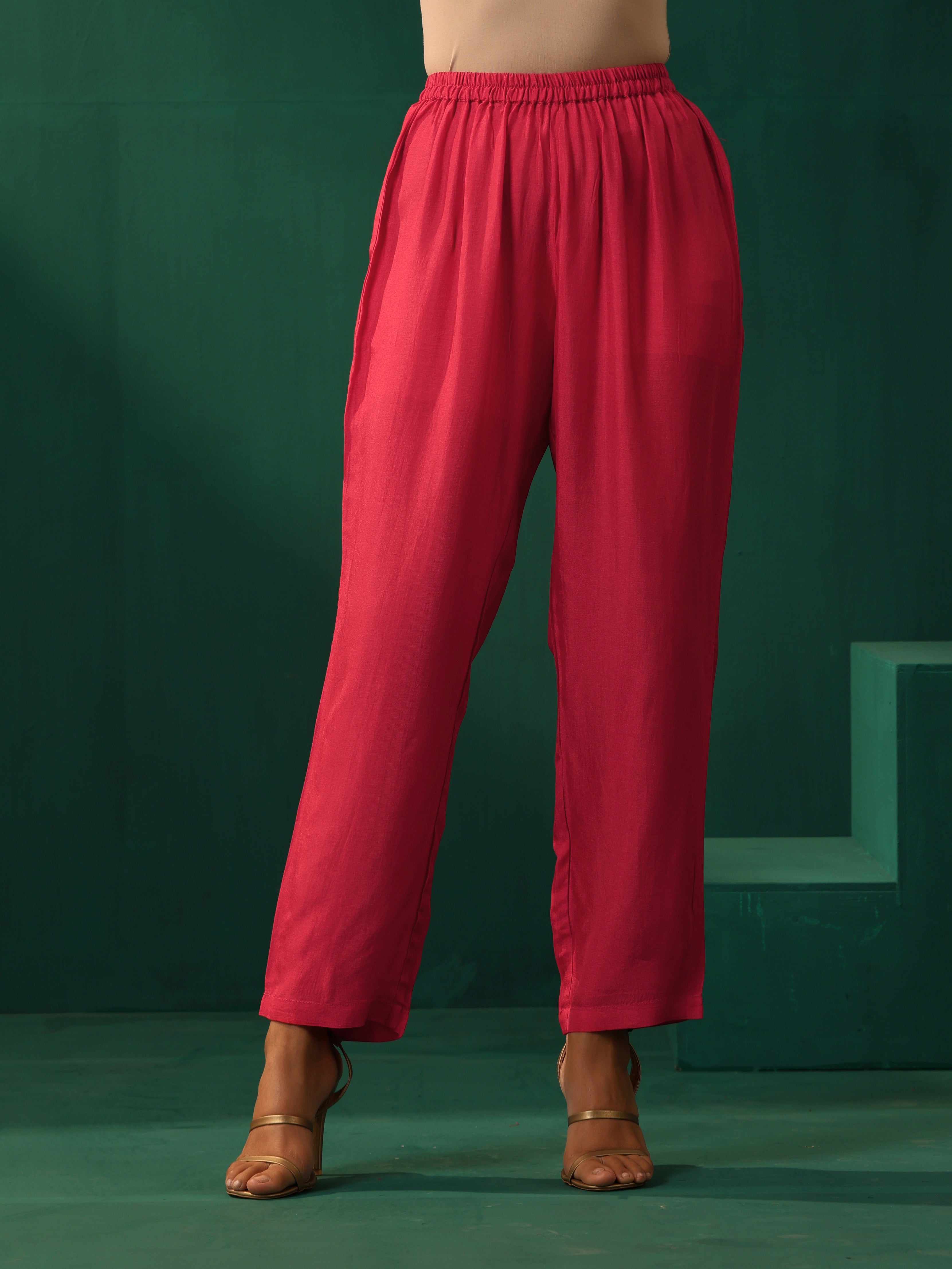 • Viscose Silk Waist Pleat Kurta With Puff Sleeves and broad cuff. Paired with elasticated waist pant. Style with pair of mules to complete the look.