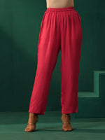 trueBrowns Pink Floral Viscose Silk Round Neck Puff Sleeve Kurta Pant SetDescription Viscose Silk Waist Pleat Kurta With Puff Sleeves and broad cuf...