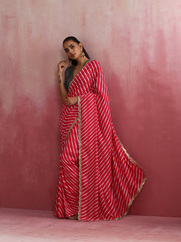 • Elevate your style with this pink leheriya print muslin silk saree. It's an ideal blend of elegance and comfort.