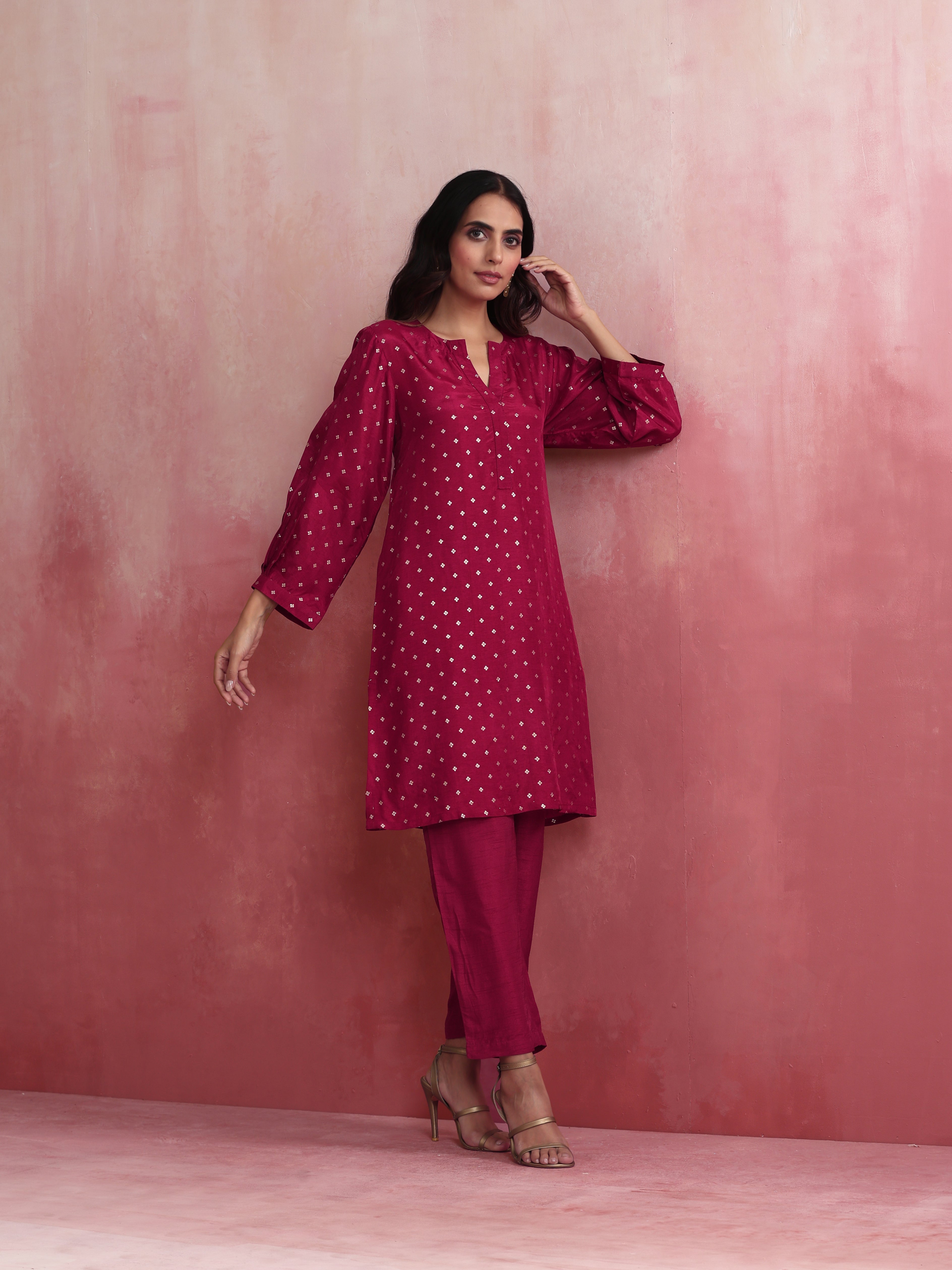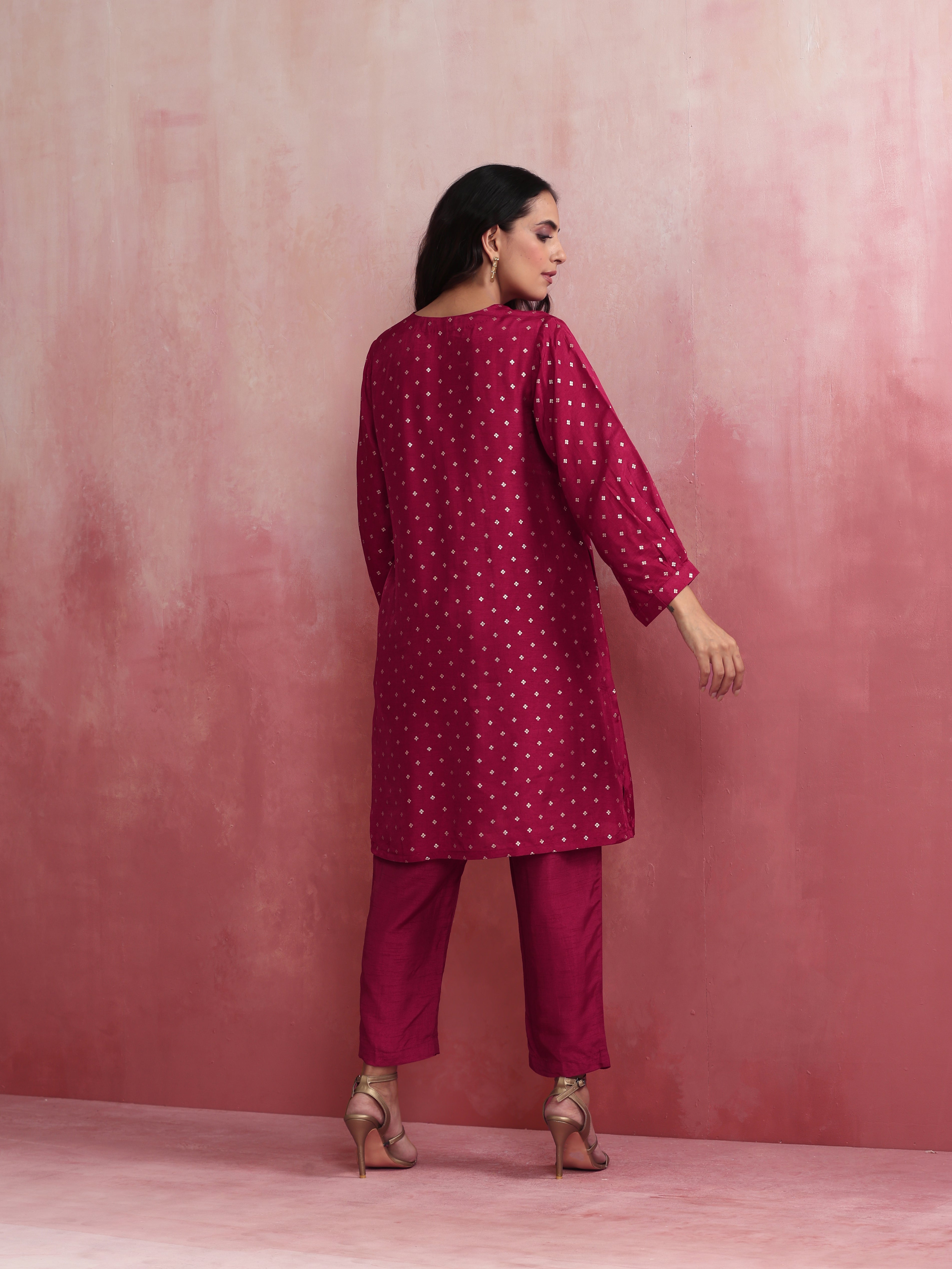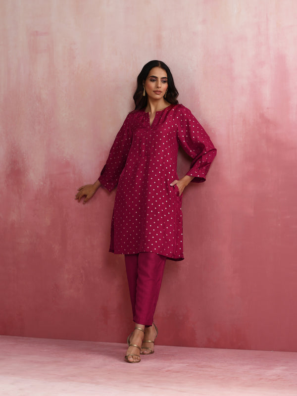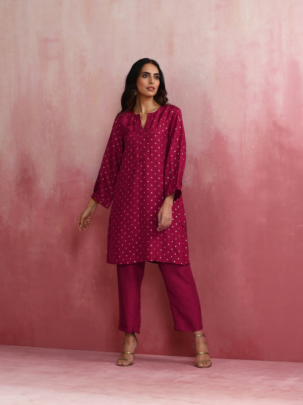 trueBrowns Pink Viscose Silk Kurta Co-ord Set