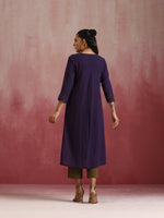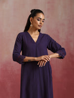 trueBrowns Purple Cotton Dobby Kurta Set - XS
