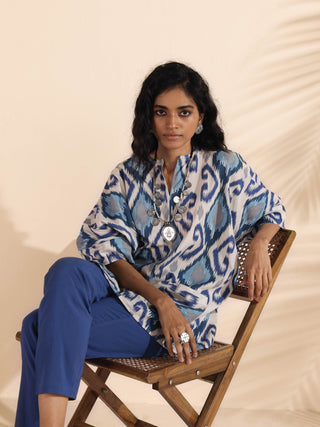 trueBrowns Blue Cotton Ikat Relaxed Co-ord SetDescription