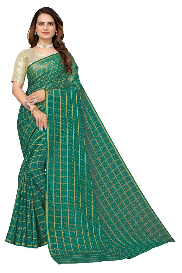 Vamika Green Jari Work Chiffon Saree (GARVITA GREEN)