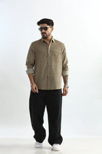 Xkind Men's Beige Corduroy Regular Fit Shirt