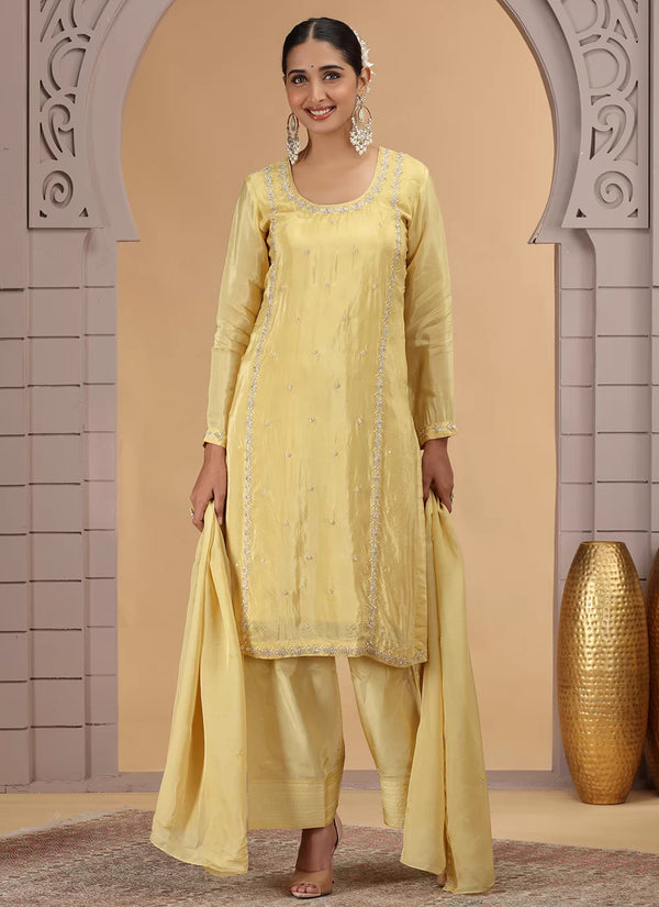 Chhap Yellow Colour Satin Silk Hand Work Salwar Suit - 32