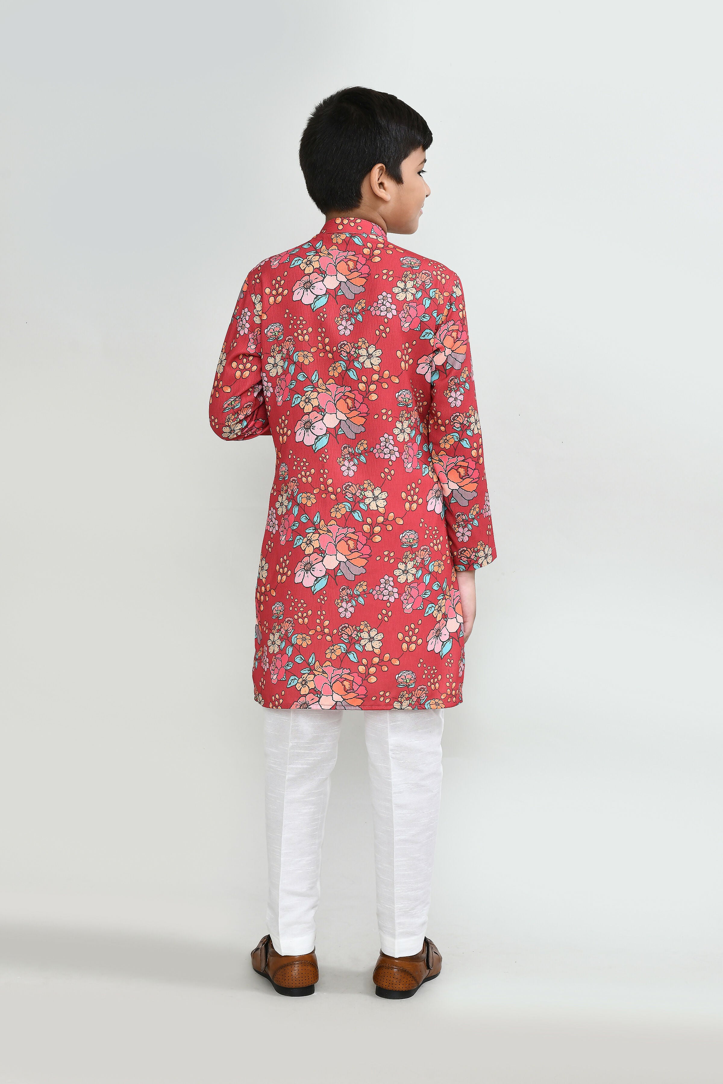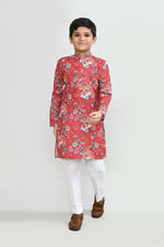 Joban Fashion Cotton Silk Red Kurta With Straight Fit Pant - 1Y-2Y