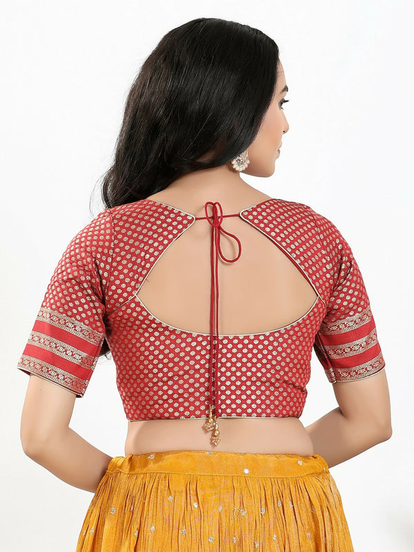 Joban Fashion Maroon Brocade Padded Blouse With Round Neck Elbow Sleeves