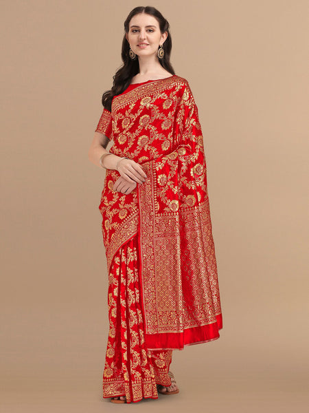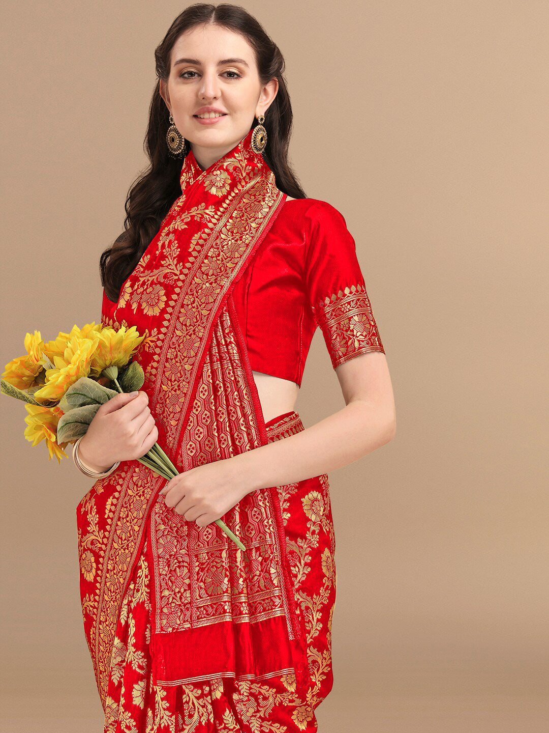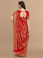 Kalini Red & Golden Floral Zari Silk Blend Banarasi Saree