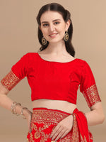 Kalini Red & Golden Floral Zari Silk Blend Banarasi Saree - Distacart