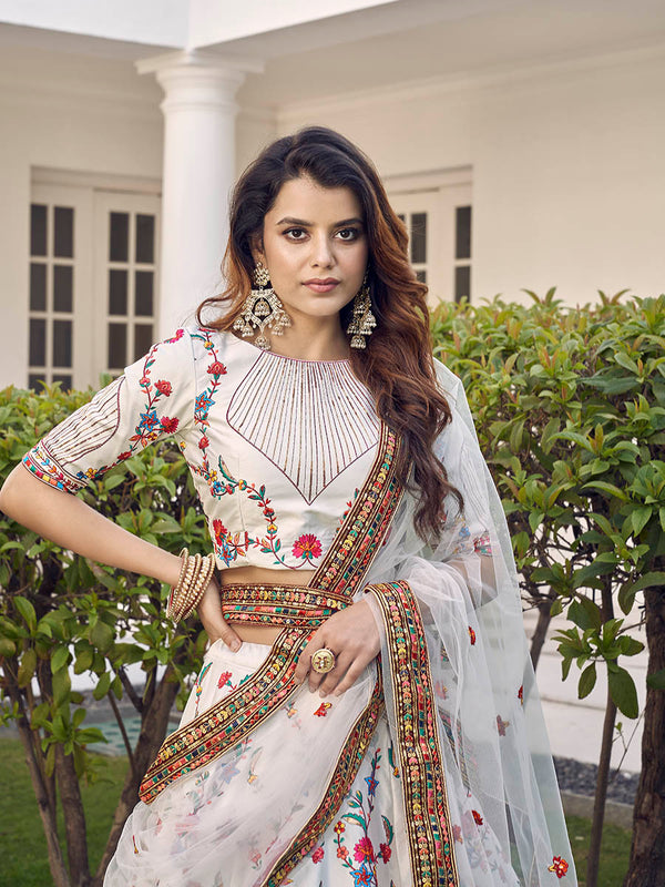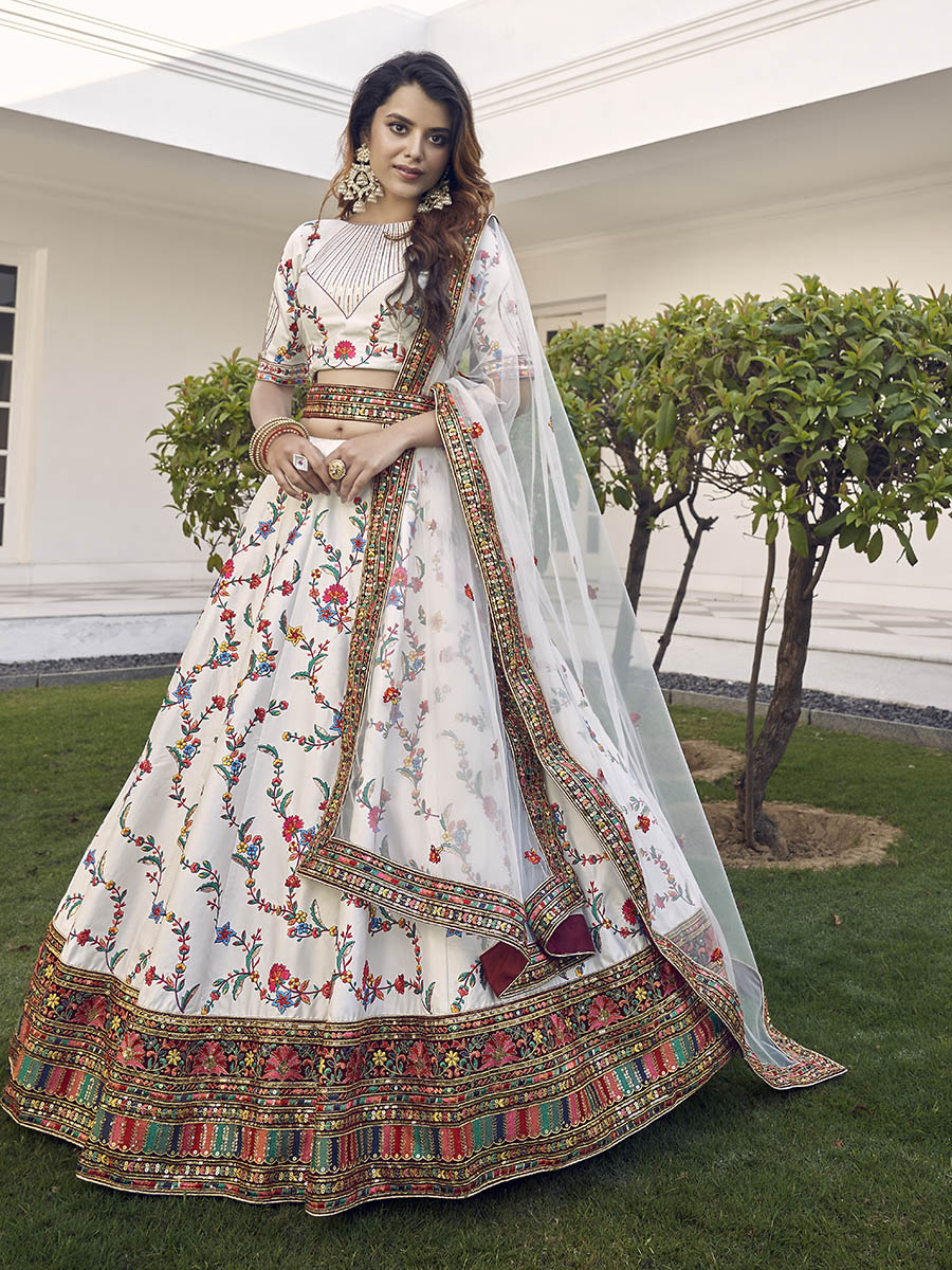Myra White Silk Heavy Embroidered Lehenga - Distacart