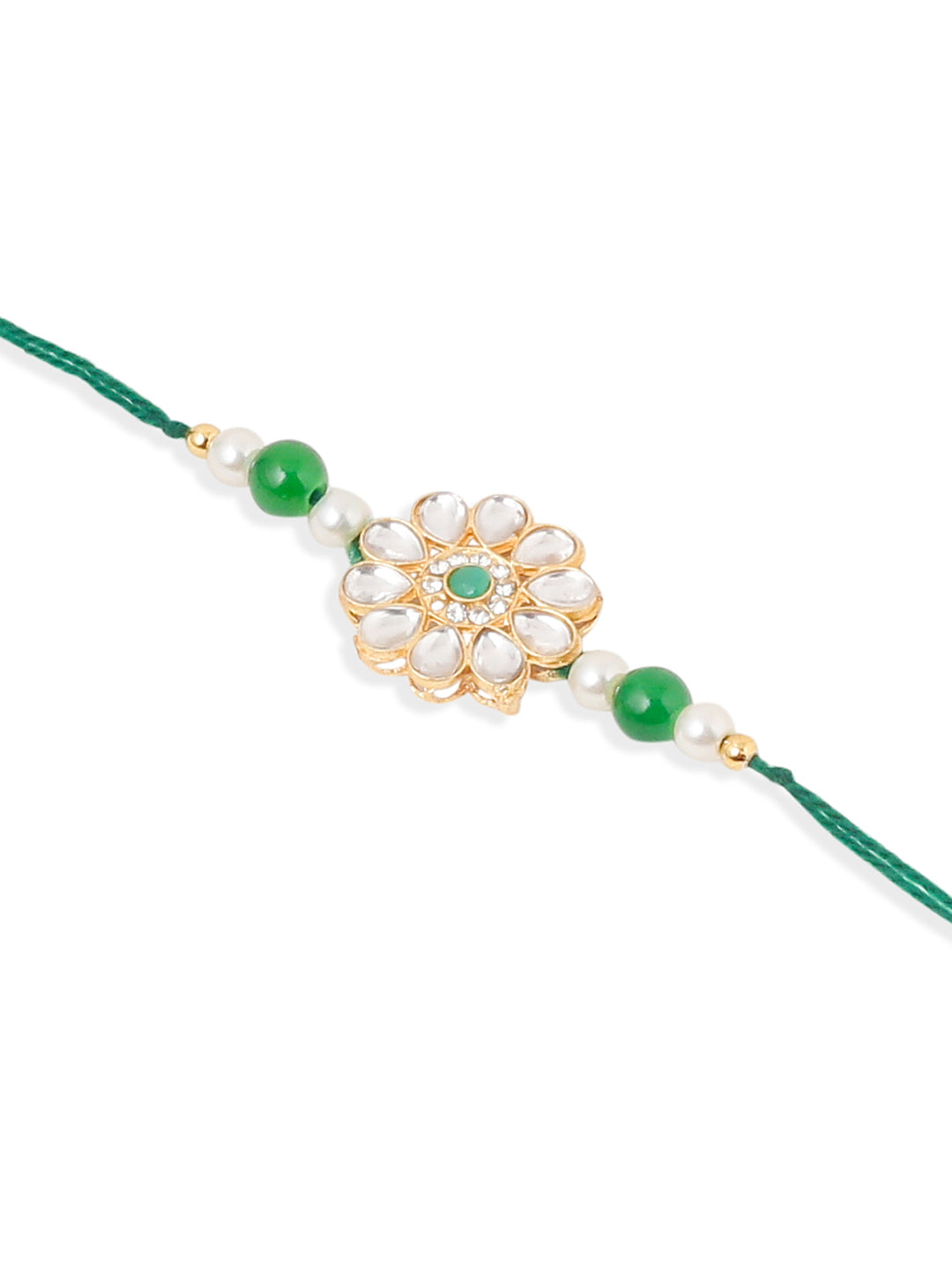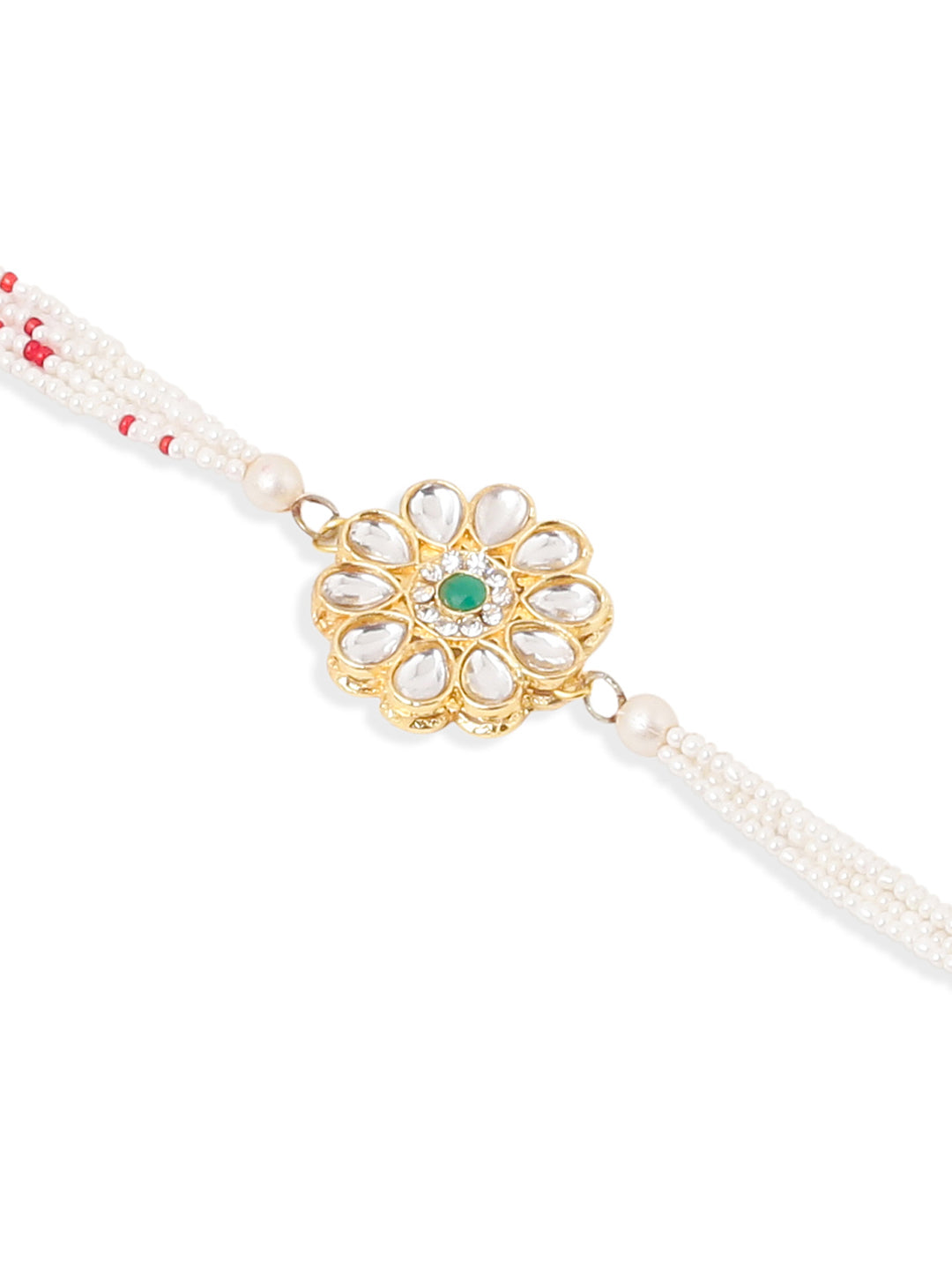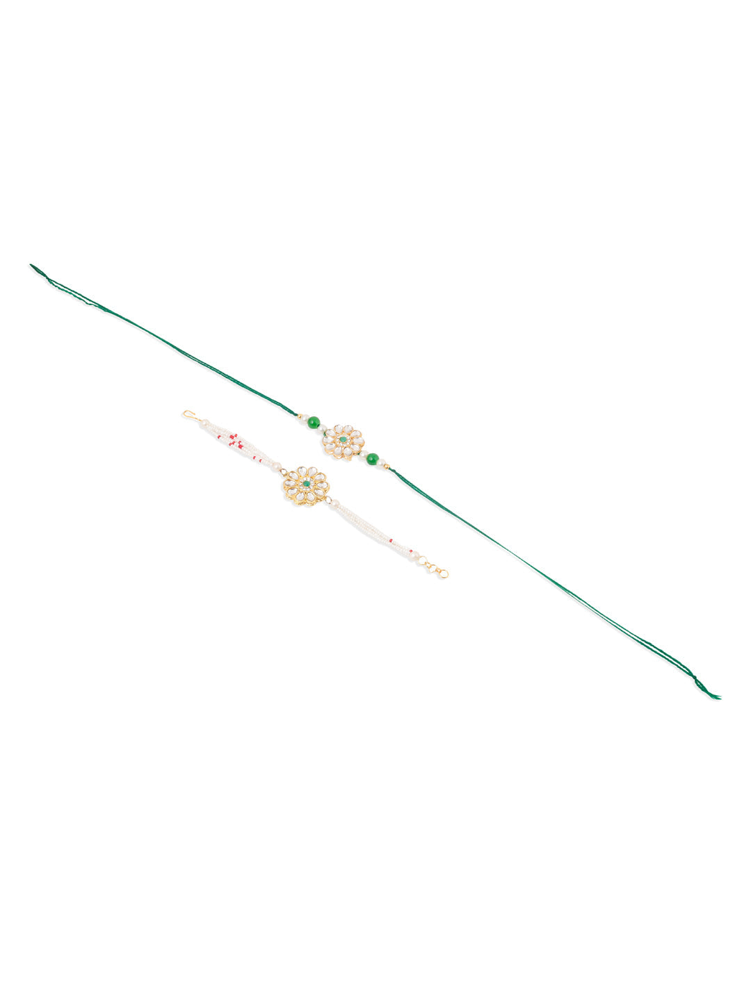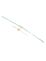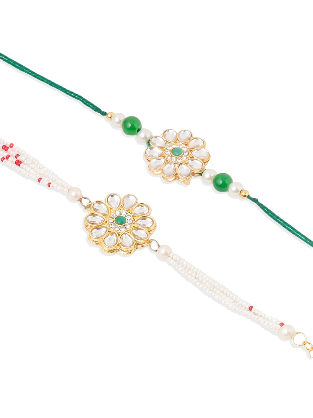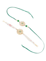 NVR Set of 2 Kundan Studded Floral Design Gold Toned Bhaiya Bhabhi Rakhi Combo - Free Size