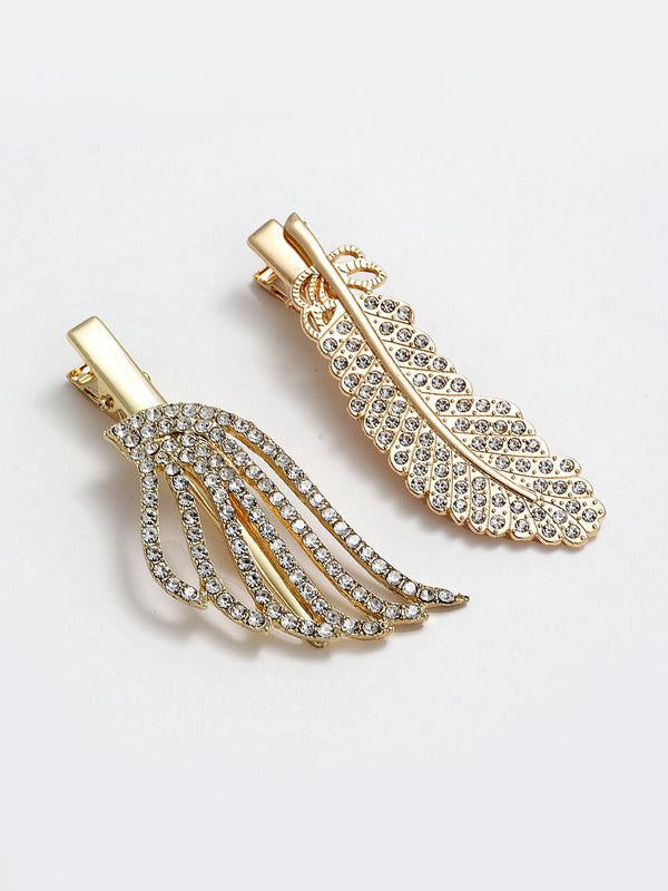 Panash Women Set of 2 Gold-Toned Cubic Zirconia-Studded Alligator Hair Clips Product Details Set of 2 Gold-Toned Cubic Zirconia-Studded Alligato...