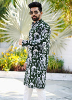 Prazu Fashion Green Lucknowi Silk Kurta With PajamaAbout the Product: GENDER : male Colour : Green Work/Pattern : Lacknowi Fabric : Silk Neck Line ...