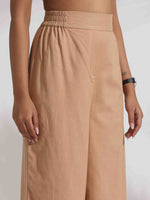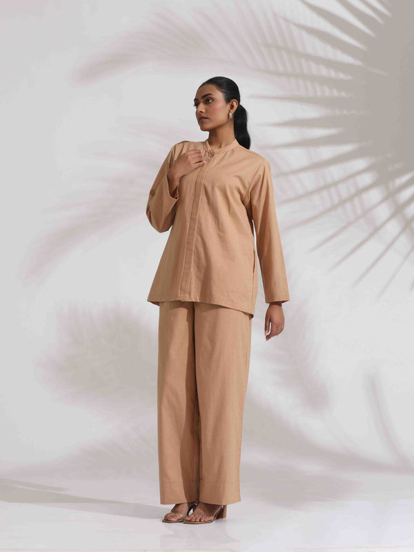 • Elevate your style with this beige cotton flex shirt top with beige cotton flex flared pants, it's an ideal blend of elegance and comfort.