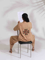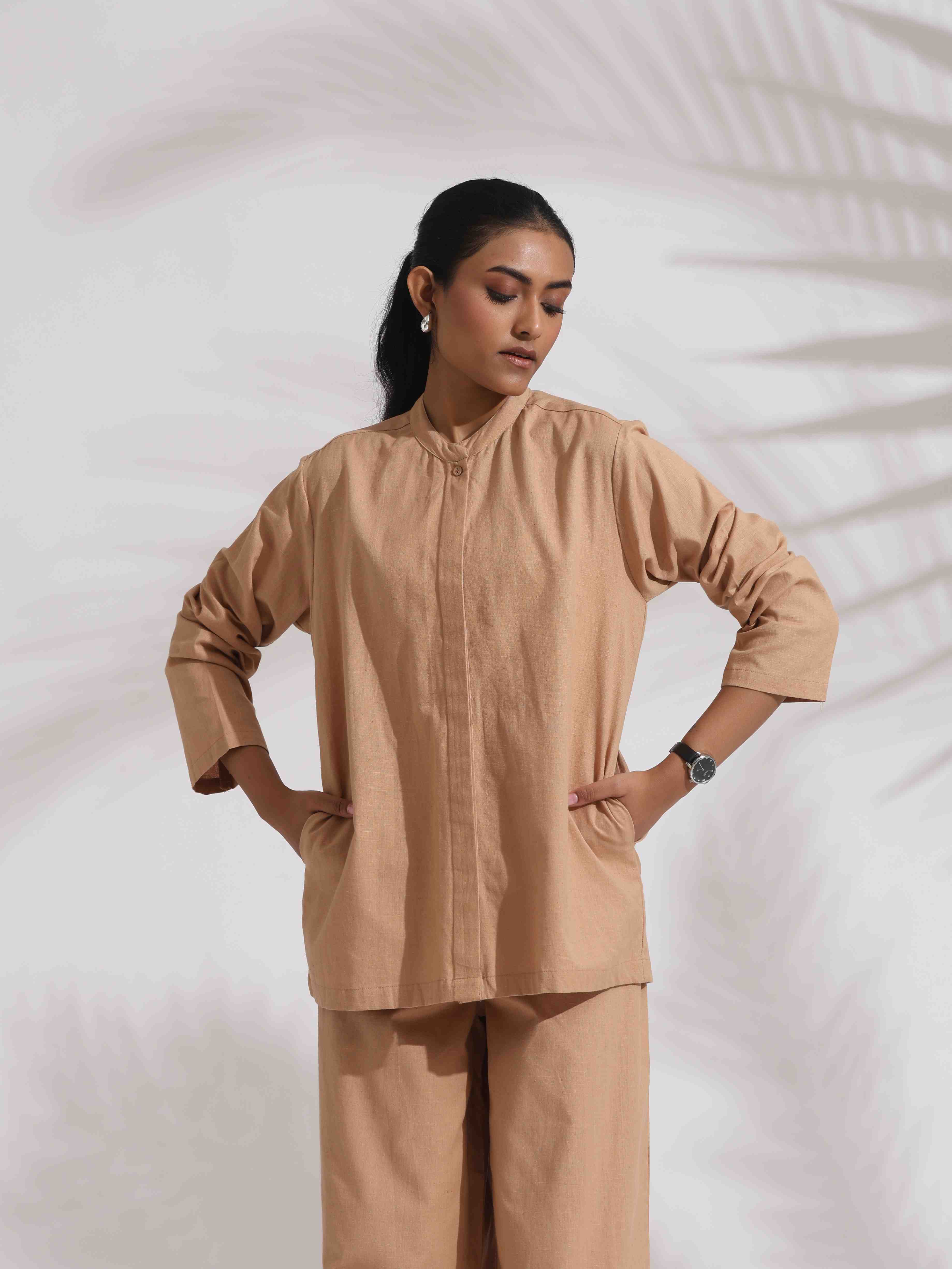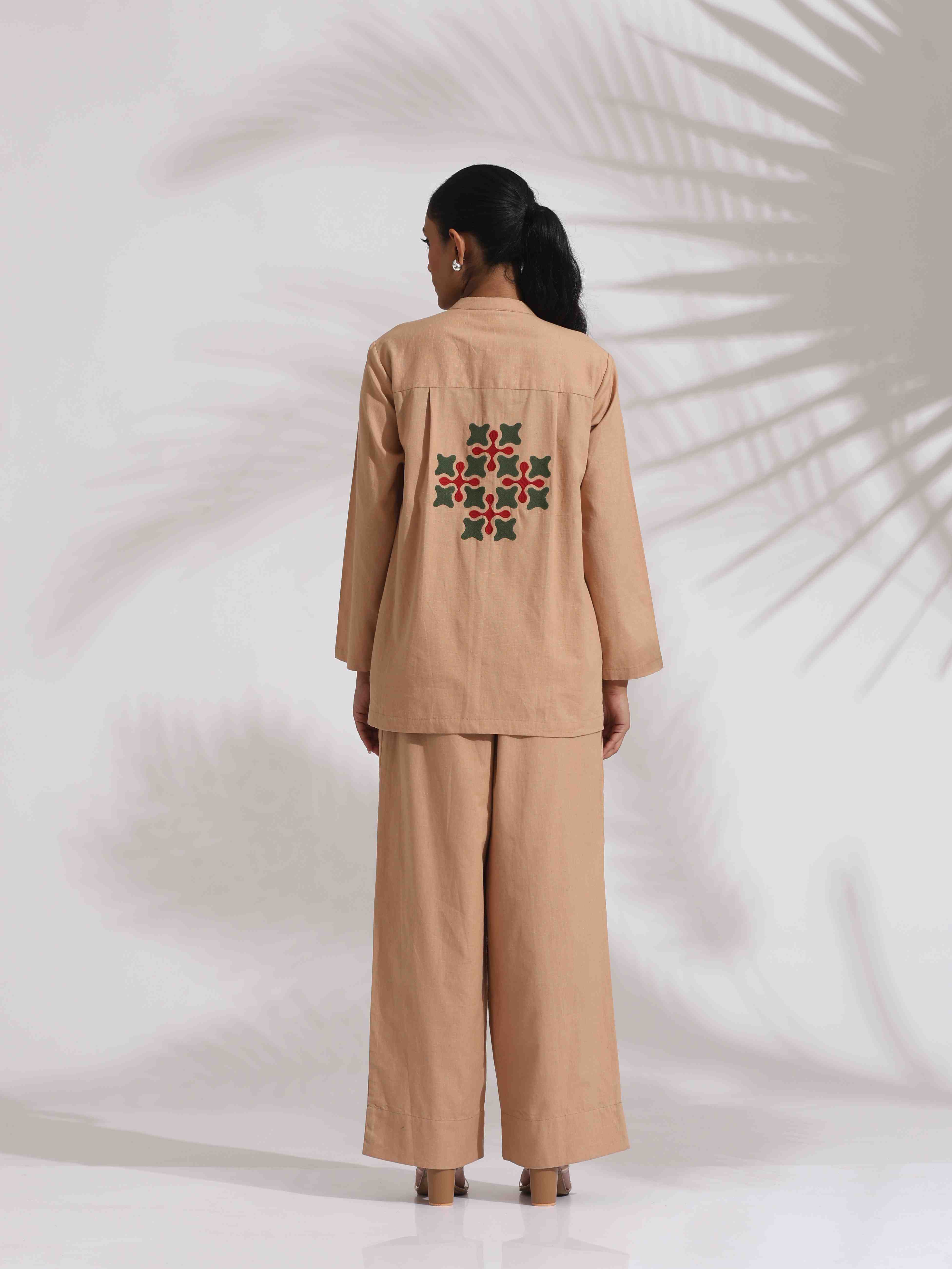 trueBrowns Beige Cotton Embroidered Shirt Top Co-ord Set
