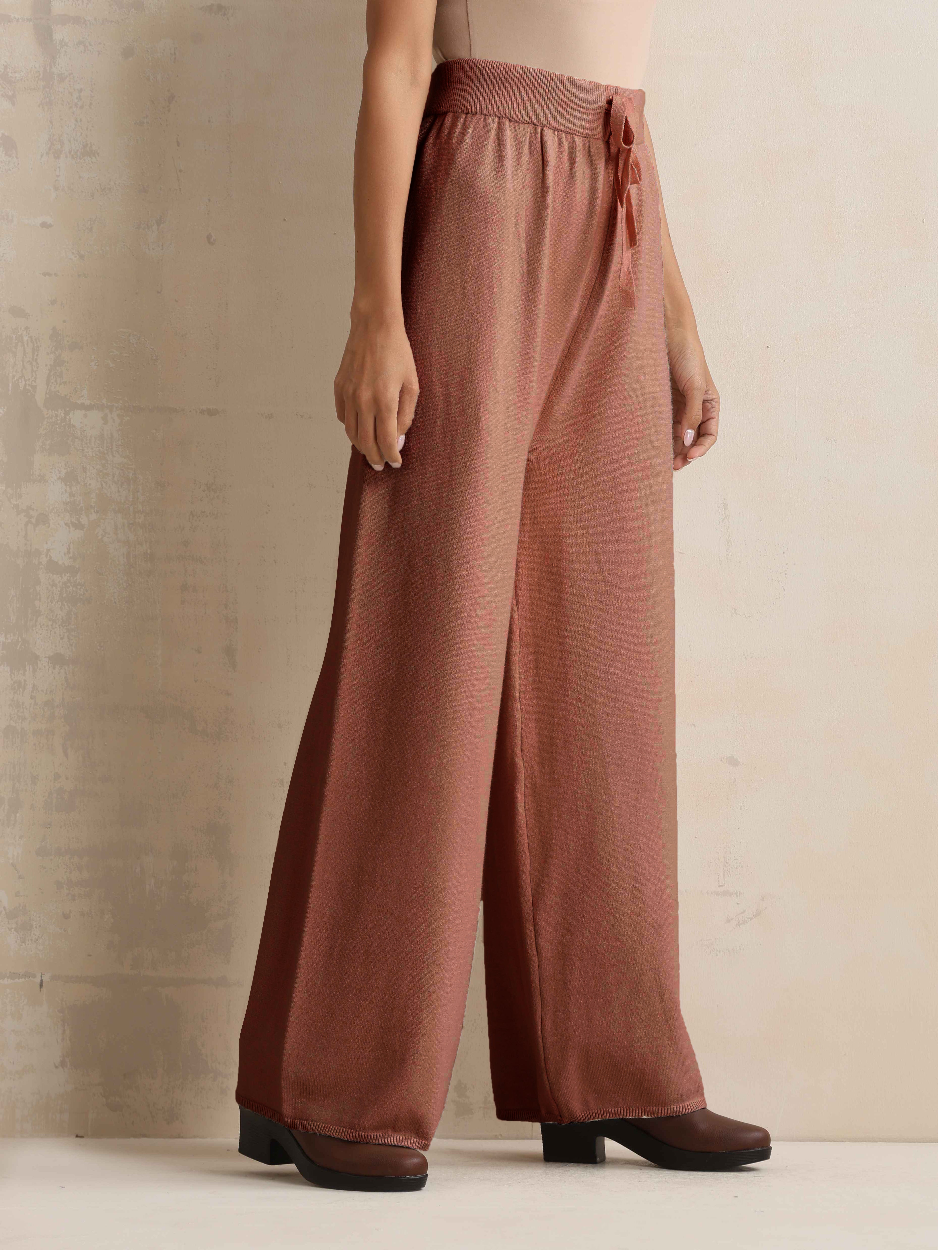 trueBrowns Peach Woollen Flared Pants - Freesize