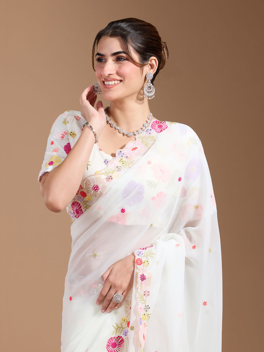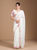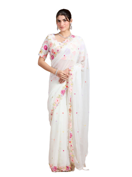 Vamika Embroidery Cream Georgette Bollywood Saree - Distacart