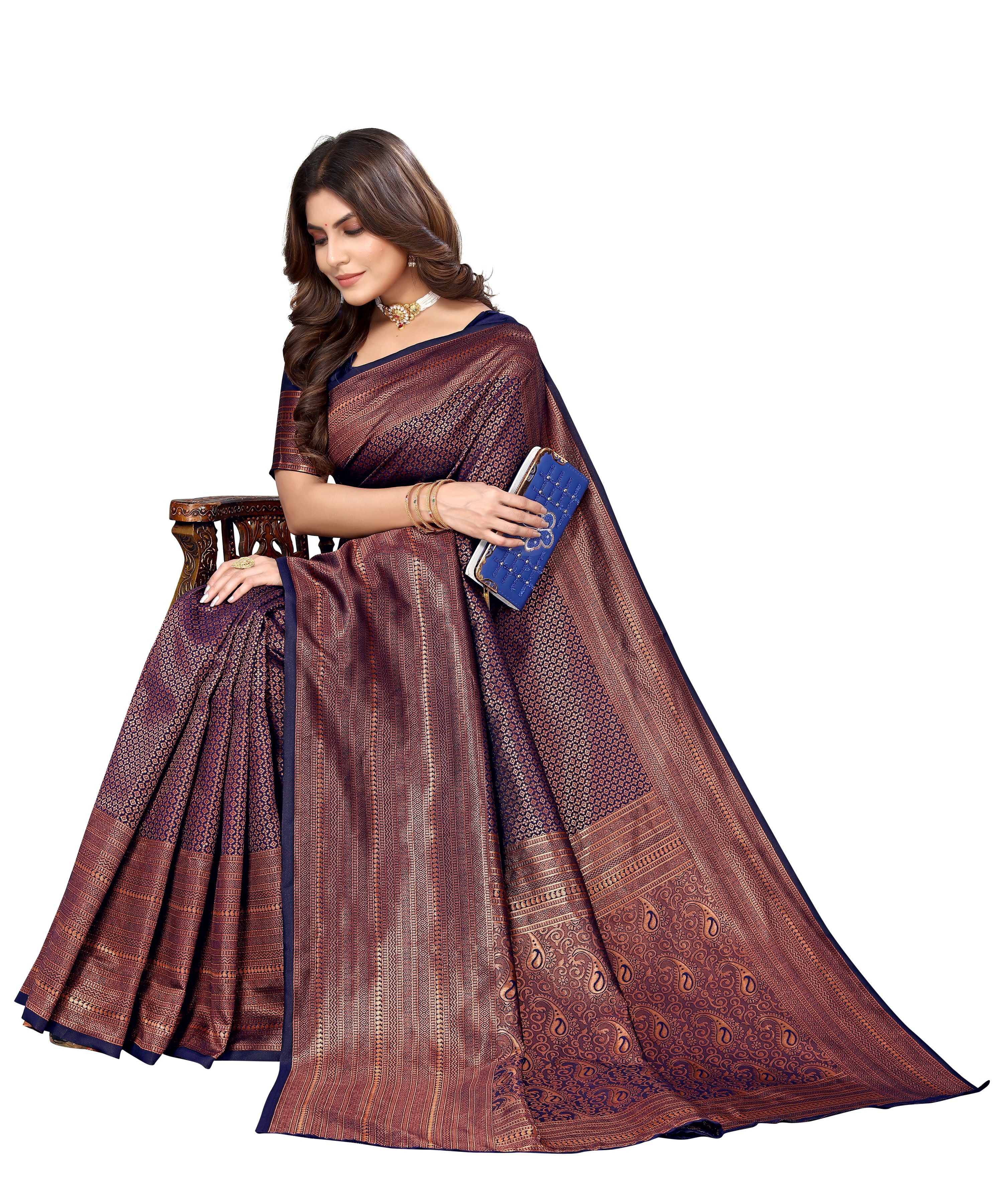 Vamika Weaving Banarasi Jacquard Navy Kanjivaram Saree - Distacart
