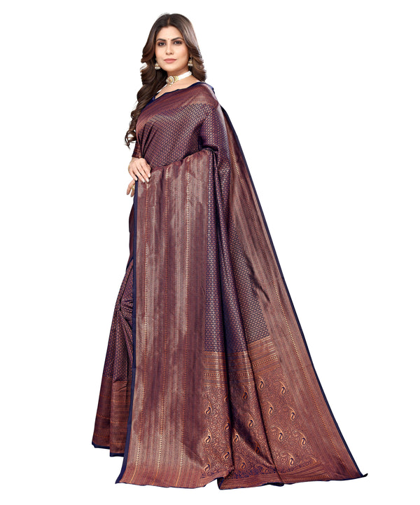 Vamika Weaving Banarasi Jacquard Navy Kanjivaram Saree