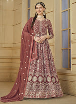 Vegaa Fashion Designer Dark Peach Faux Georgette Embroidery Anarkali Suit